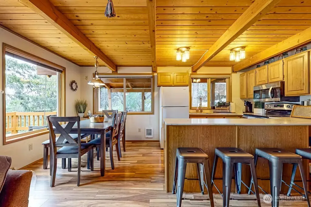 Nestled in the trees, this charming cabin is the perfect retreat from the city. Open floor plan, offering a cozy great room with a wood stove, a welcoming dining area, utility room, 3/4 bath and a main-floor bedroom. Upstairs, you will find a second bedroom and a loft that provides additional sleeping space for family and guests. Step outside to the deck and enjoy peaceful moments in the mountains-ideal for entertaining or unwinding. Enjoy the community clubhouse and outdoor pool, located on the shore of Lake Cle Elum. With snowmobile, ORV, and hiking trails right at your doorstep, outdoor enthusiasts will find endless adventure. In great condition and ready for a new owner, this cabin is the perfect opportunity to own a slice of paradise.