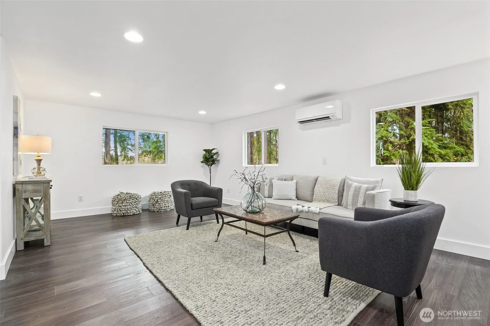 Welcome to your peaceful private sanctuary on 2.72 acres. Modern one level home has been meticulously refreshed from top to bottom. Delightful setting nestled amidst magnificent evergreens & mature plantings, nature lovers will appreciate the serenity. Open concept floor plan w/3 bedrooms, 2 full baths. Fabulous kitchen w/eating space features soft-close cabinets, crisp quartz counters, newer SS appliances, ample storage. Gorgeous LVP floors throughout. Lower level daylight basement is a perfect space for office{Ziply internet}, gym/yoga studio, or storage. Gardeners paradise w/mature apple orchard, plenty of land for hobby farm, small animals. Newer roof (2022), A/C. No CCRS, RV parking, room to build a shop/garage. Minutes to DT Duvall.