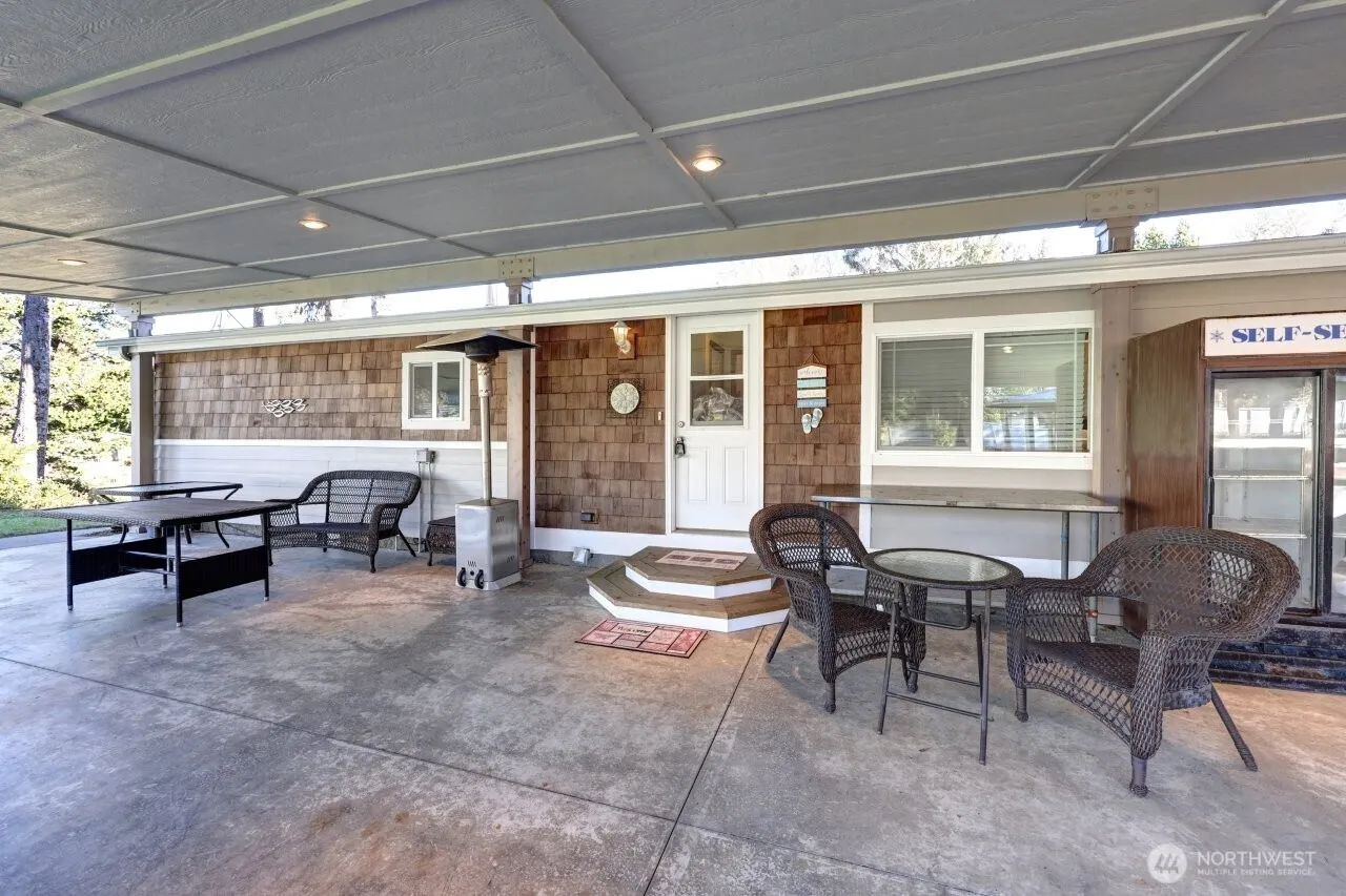 Let the good times roll, bring your family and friends to this one of a kind property! This distinctive .87 acre property offers a beautifully remodeled 2 bedroom, 2 bath manufactured home that blends modern upgrades with rustic charm, featuring wood beams and tile floors throughout and an upgraded kitchen. Designed for both relaxation and entertainment the property boasts a fully covered outdoor kitchen with cement counter tops, sink, and gas hookup plus a covered gazebo with large fire pit. The fully fenced/gated, and paved grounds feature 7- 50 amp RV hookups, multiple outbuildings, and lush landscaping. Nestled in Surfside Estates your minutes from the beach or the bay. This rare find is perfect for those seeking something truly unique!