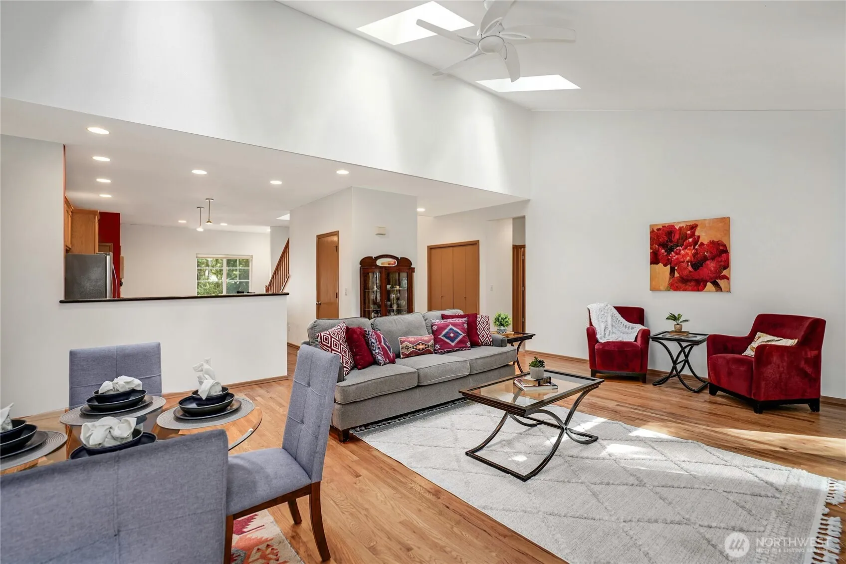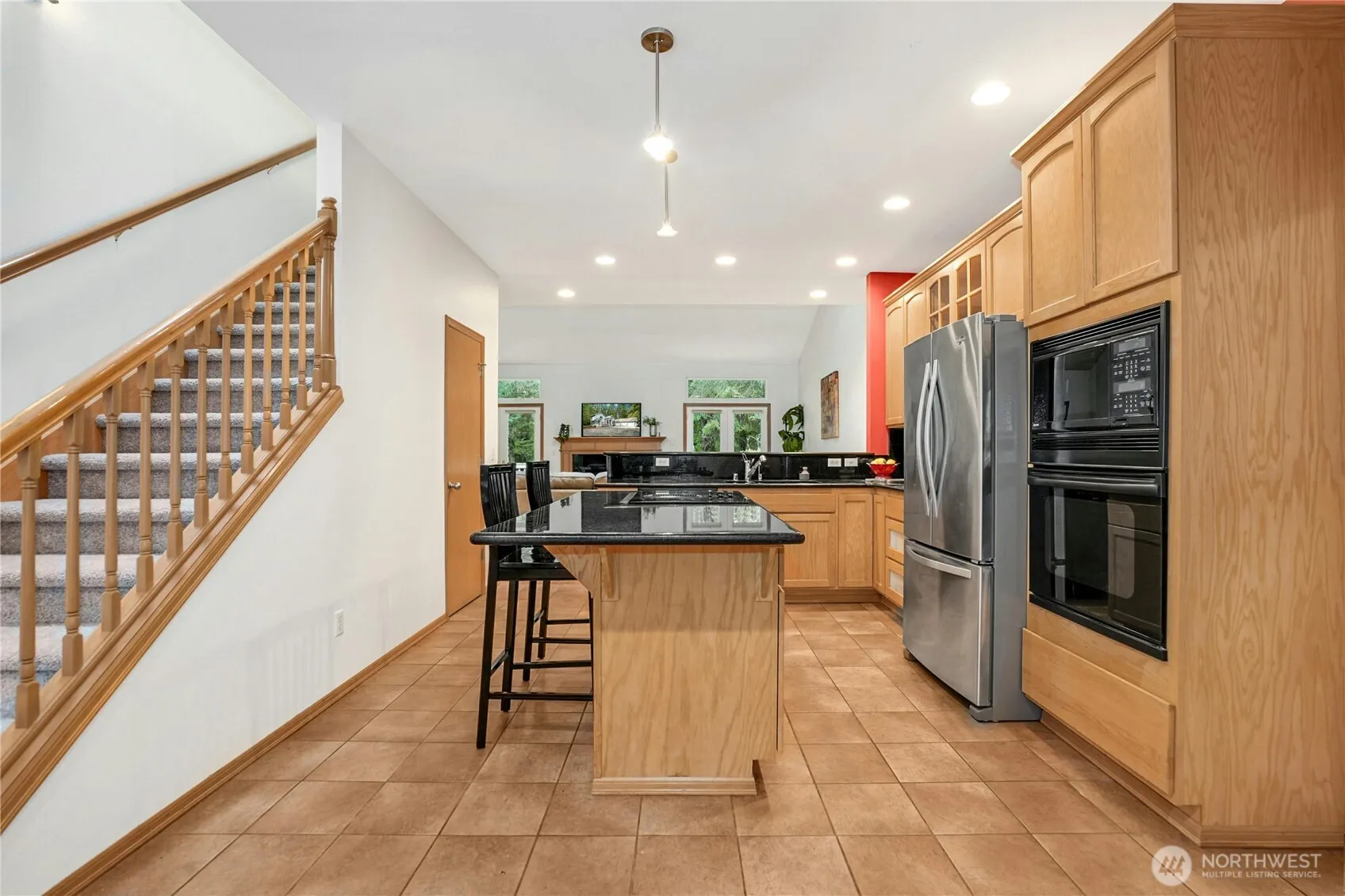 Spacious 3,070 sq. ft. home on 5+ acres of designated Open Space. Enter thru covered porch and Main floor offers eat-in kitchen w/counter dining, office area, walk-in pantry, Utility/Laundry Room, + access to large 3-car garage. Bright/spacious Living Room w/skylights opens onto huge deck thru French doors, for indoor-outdoor living. On one side of Living Room, Primary Bedrm offers full bath+ walk-in closet. On the opposite side, another generous sized bedrm w/abundant natural light and large closet, w/second full bath down the hall. Upstairs, the main house includes bright and spacious loft area. Attached ADU has its own private entrance, complete w/full bath, spacious bedroom, eat-in kitchen, living room and first floor office.