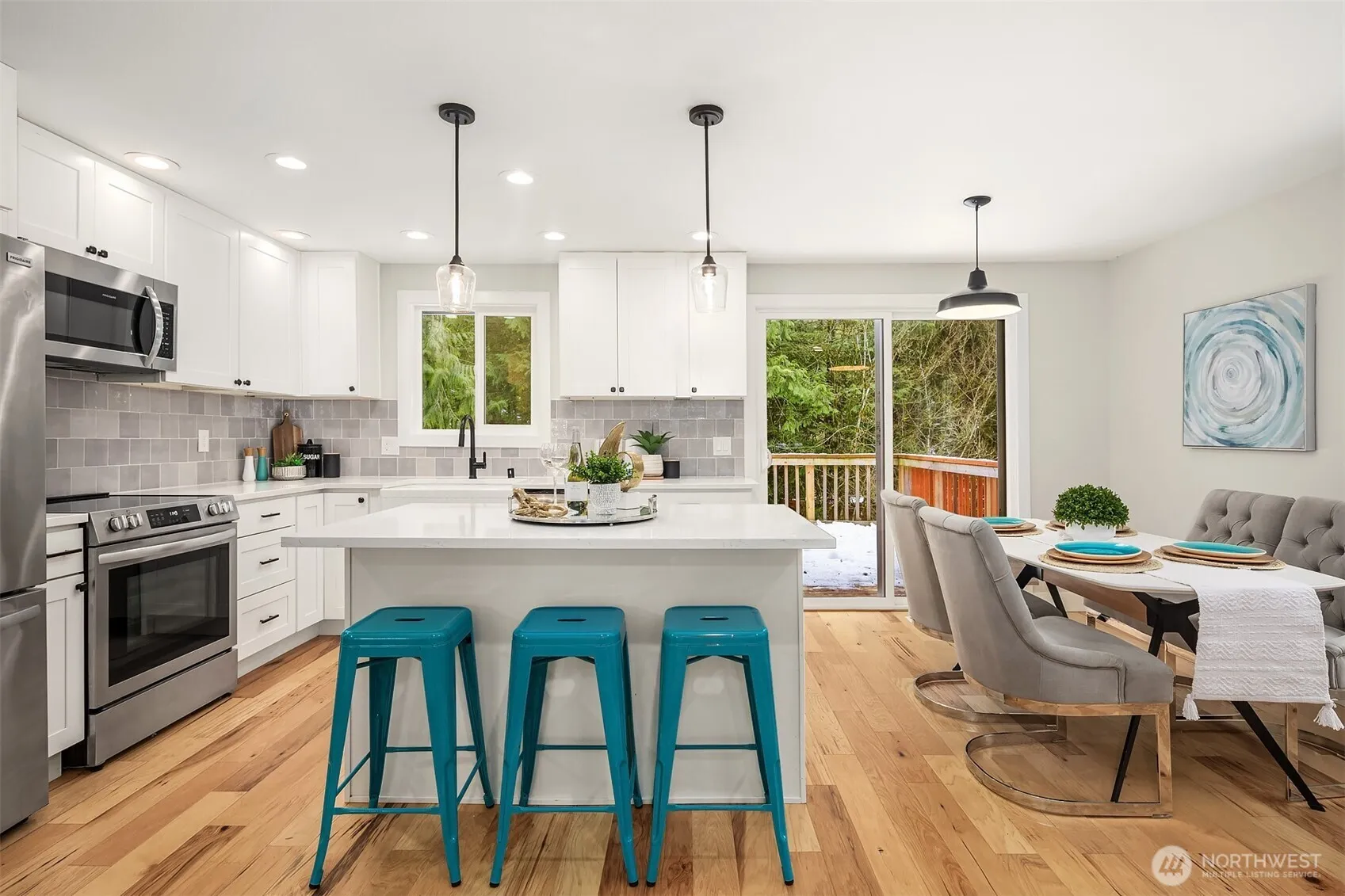 This is the North Bend home you’ve been waiting for! Shy acre on a gorgeous setting at the base of Mount Si! Huge detached shop, fantastic updates throughout and plenty of room for everyone! Inside find an updated spacious kitchen and dining area that seamlessly flow to the deck or main room. Large windows throughout and skylights provide excellent vibes as you enjoy your mountain setting. Upstairs boasts large primary suite as well as full bathroom and bedroom. On the lower level find one more bedroom, office and 4th bedroom that is non conforming, large bonus room and more! Treat yourself to this North Bend home before you miss out! Fully fenced back yard, shop with EV hook ups and plenty of space! Don’t miss out!