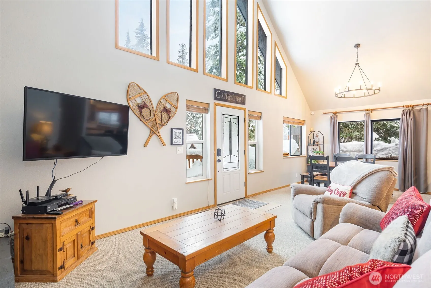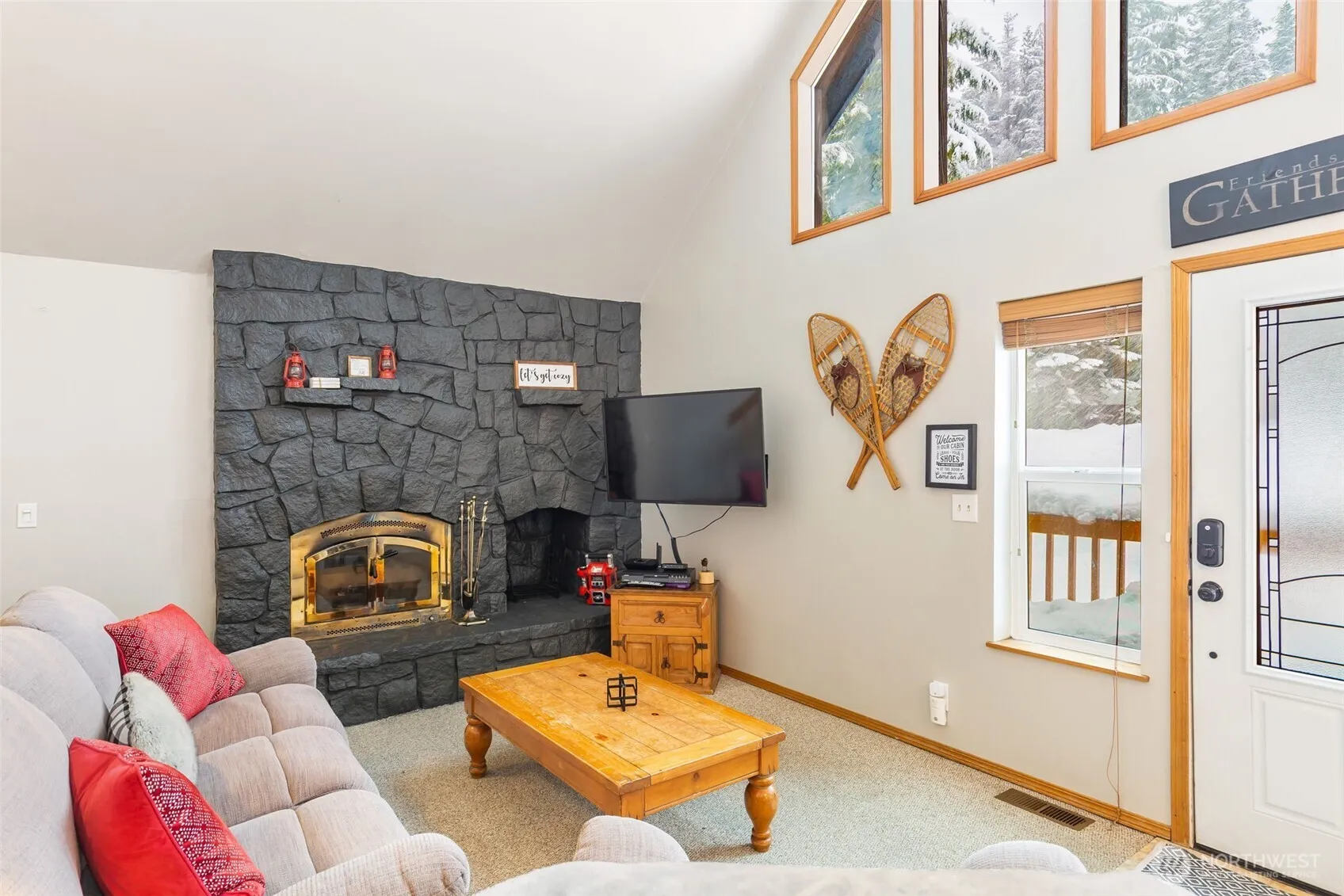 Price reduced! Welcome to Your Mountain Paradise! This charming 2-bedroom, 1.75-bath home features an open-concept floor plan with vaulted ceilings, stone fireplace and hearth and sky-scraping windows that capture the vast beauty of nature. Additional space in the loft and 1000 sqft unfinished basement used as a game room makes for great entertaining. Situated on a rare private flat lot, the home is located on a quiet, county-maintained dead-end road. Snoqualmie Pass offers year-round recreation, including world-class skiing, mountain biking, and hiking. Short-term rental is being sold fully furnished with management in place, and there are no HOA fees.