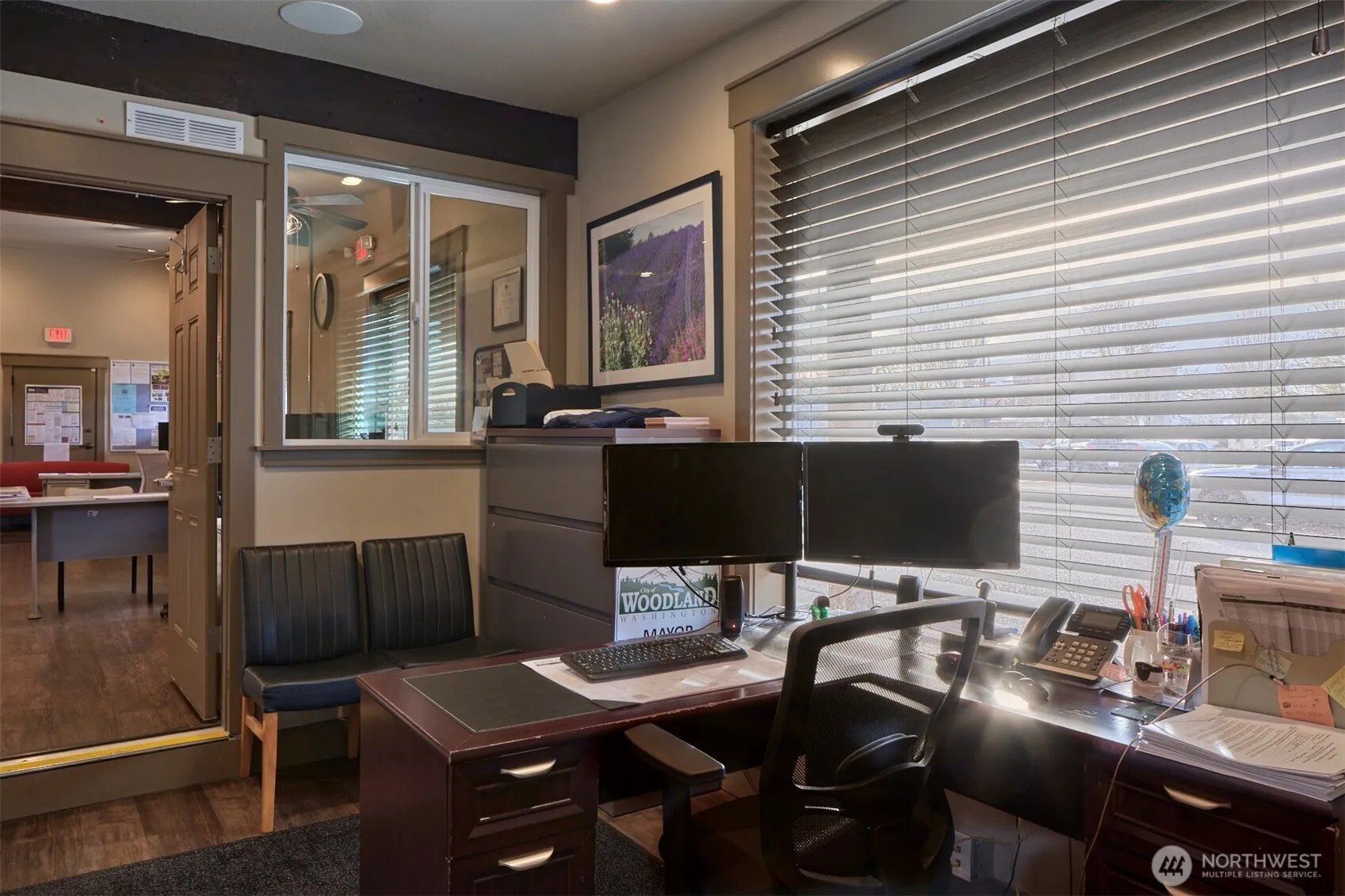 Located in the heart of downtown, this prime commercial office space offers high visibility on a corner lot . Recently updated with modern finishes, this property is perfect for any business looking for a professional and stylish environment. Currently designed for 2 tenants, each with their own access and bathroom, windows bring in plenty of natural light. Larger unit has 2 separate offices and a kitchenette in addition to a large open central space.