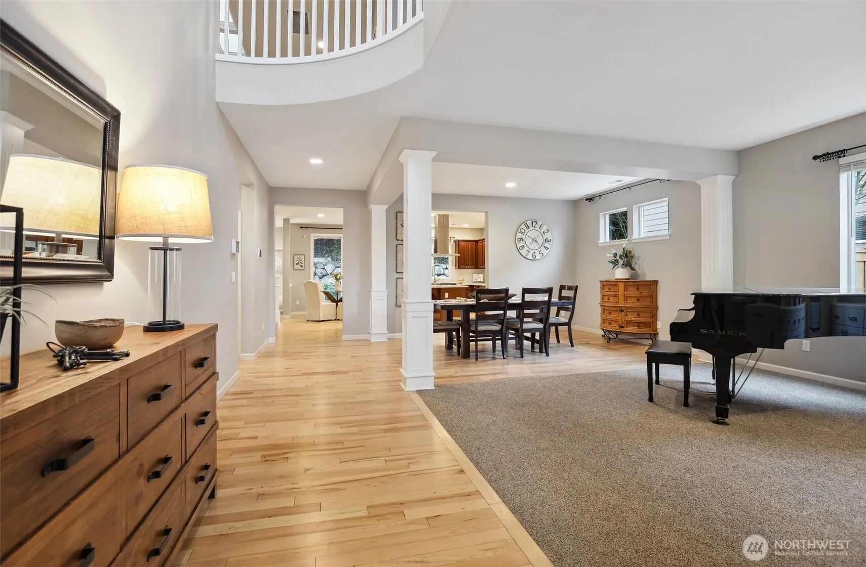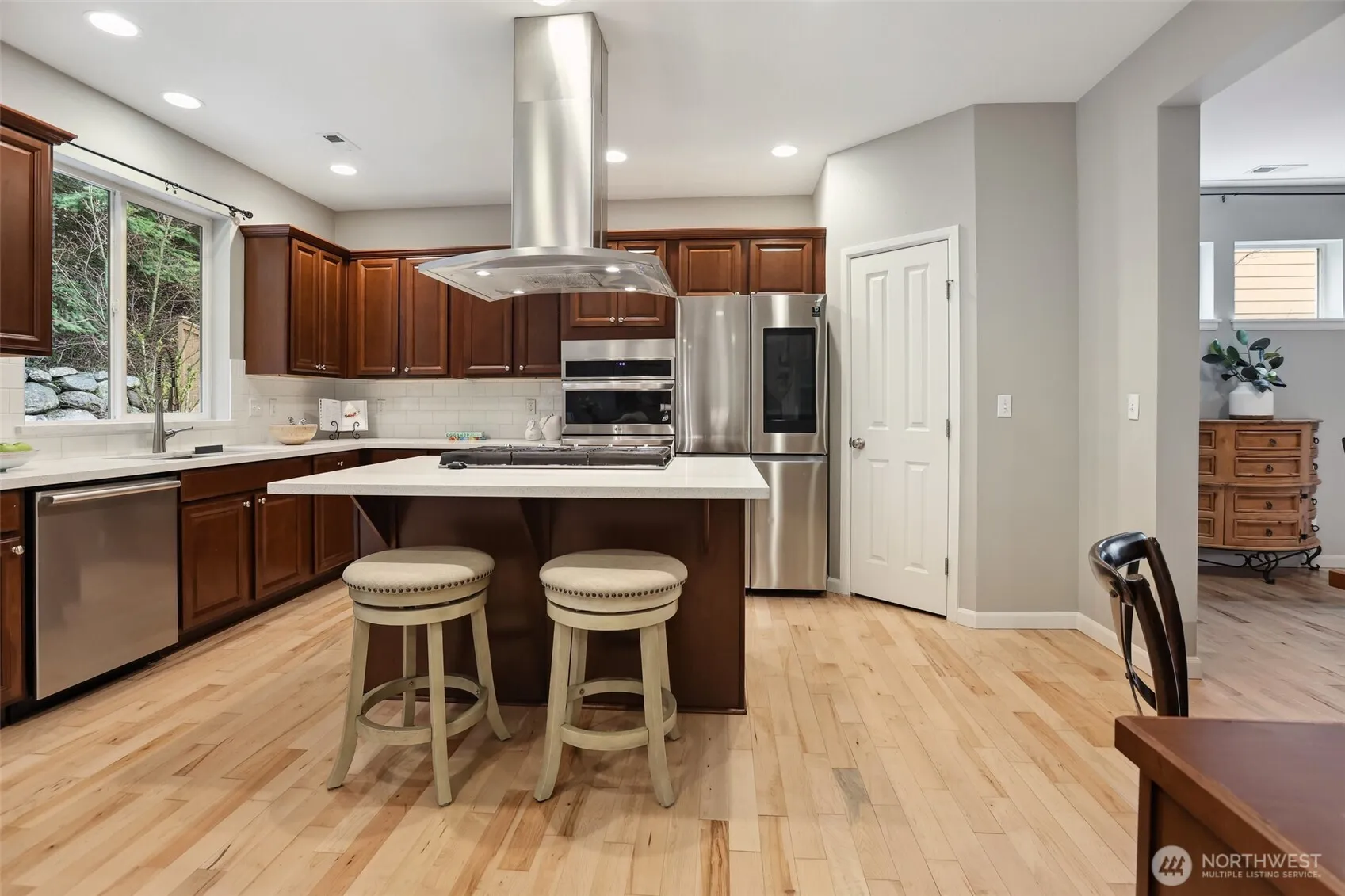 Nestled in Snoqualmie Ridge, this picture-perfect home balances elegant style with warm livability. An open floor plan with gorgeous maple hardwoods & thoughtful built-ins seamlessly blends sophistication with practicality. Highlights include a dreamy kitchen with sleek quartz counters & premium appliances along with a lavish primary suite with a spacious 5-piece bathroom, cozy reading nook or nursery & private covered balcony. Backing to Greenbelt, this home offers rare privacy on a peaceful dead-end street, a perfect balance of seclusion & convenience with nearby trails & shopping. A generous 3-car garage with built-in storage adds to the functionality of a home that offers not just space, but a lifestyle you’ve been searching for.
