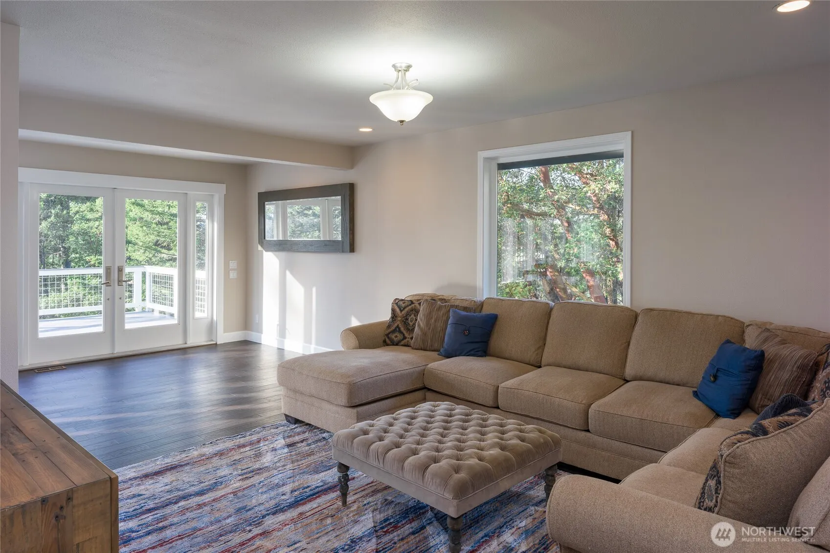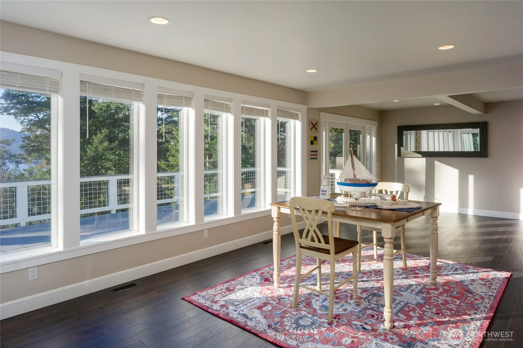 Beautiful move-in ready 2,400 + sf home overlooking Ship Bay, 4 min. from Eastsound. Upgrades incl. fiber Internet, new windows, wood floors, radiant bath floor, bath remodels, kitchen appliances, & an upgraded septic. This SW-facing view home sits atop 2 1/2 AC, w/ wrap-around multi-level decks surrounded by Madronas, firs, fruit trees, & grassy meadow. Addl building is perfect for bikes & kayaks. Main floor incl. mud room entry, living room, den, kitchen w/ cherry cabinets, granite counters, & stainless appliances. French doors open onto the deck, outdoor dining area w/ gas hook-ups, Bonus Room (office, den, or 4th BD), 3/4 BA, pantry, & oversized 2-car garage w/ deck. Enjoy views upstairs from primary BD w/ bath & laundry, + 2 BD, & BA.