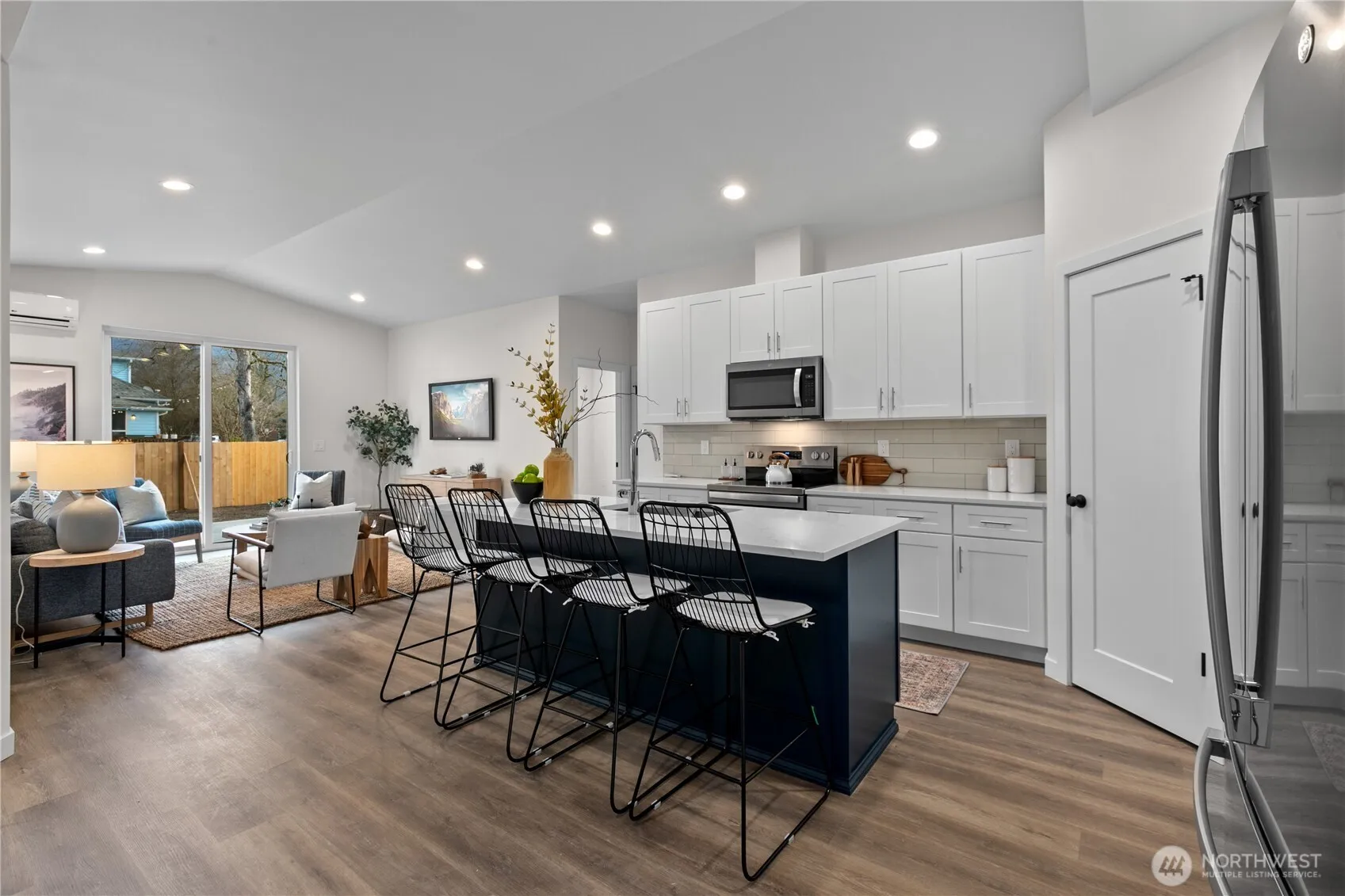 Experience modern living in this beautifully crafted new construction home! Featuring 3 bedrooms, 2 bathrooms and 1,543 square feet of living space, this thoughtfully laid out home boasts superior workmanship, high ceilings and an oversized sliding door. The stylish kitchen includes quartz countertops, stainless steel appliances (All Included), a pantry and large kitchen island. Five (5) HVAC mini-splits ensure year-round comfort. Tons of closet space and a laundry room off the garage enhance convenience. Windows in the garage provide plenty of natural light year round. Take in the stunning mountain views from your secure back yard perfect for privacy and relaxation. Walking distance to all that Gold Bar offers. Backyard grass to be added.