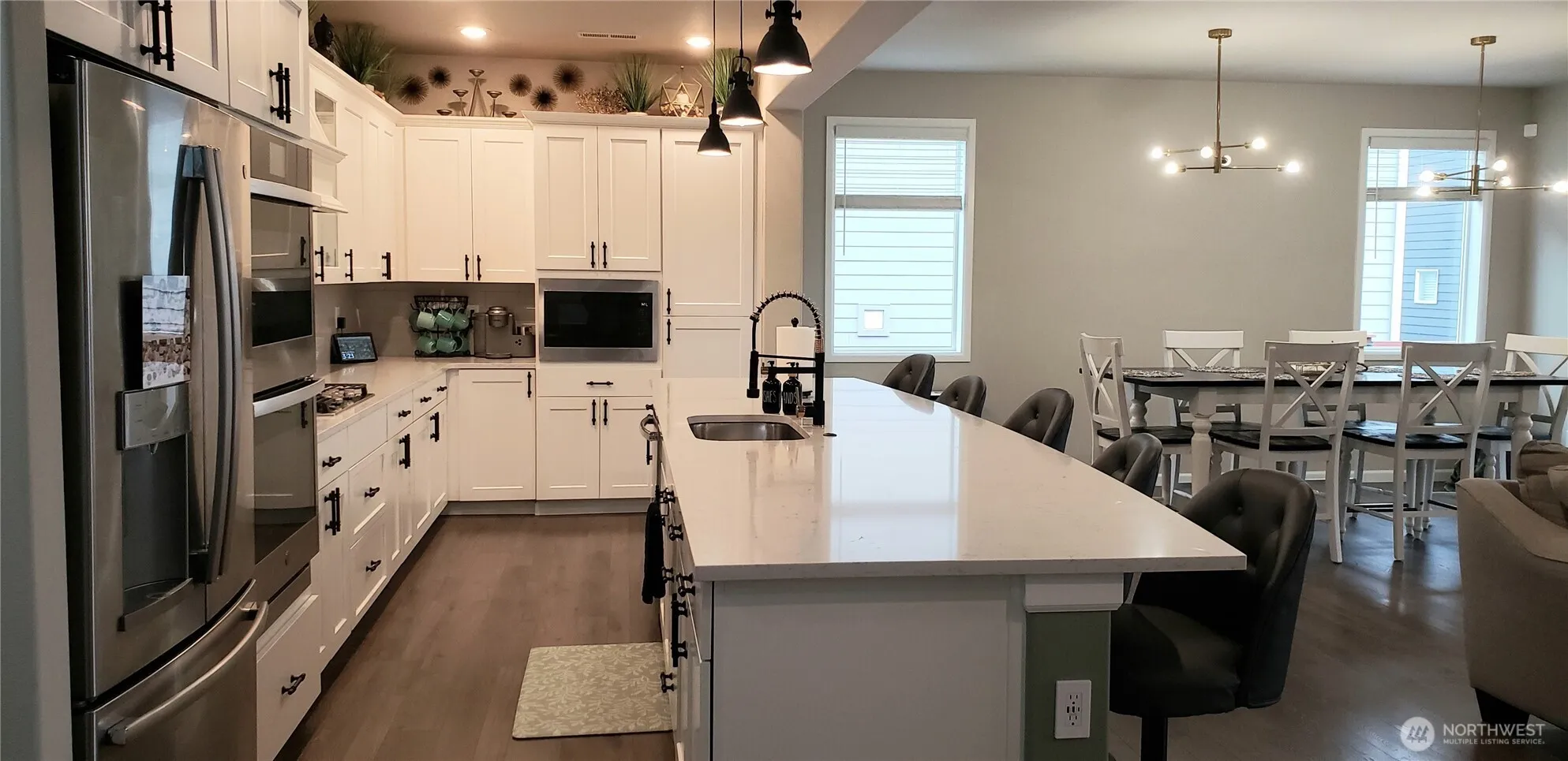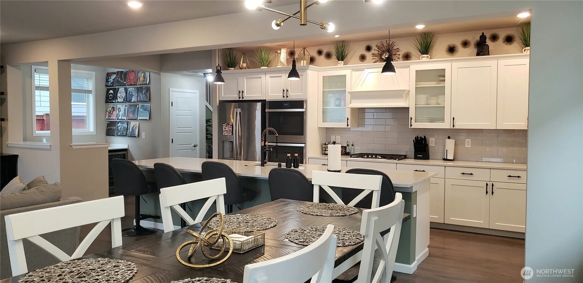 Move in Ready Better than New impeccably Maintained Lenar Home has a great open main floor design great for entertaining. Beautifully upgraded Huge 5 Chair Island Bar Kitchen Stainless Appliances, Double Ovens, White Cabinets, Pantry, Quartz Counter Tops, and VP Floors thru Out. Spacious Dining Room, Living Room Wet Bar Area with Mini Frig w/Upgraded Floor to Ceiling White Brick Gas Fireplace. Huge Primary Master Bedroom Walk In Closet and 5 Piece all Tiled Bathroom. 2 other Bedrooms have access to the Full Main Bath. Upstairs Utility Room w/extra Storage. Smart Home and Added AC Unit. Nicely Landscaped Fully Fenced Backyard. Entertainment Sized Covered Patio and Garden Area. Nice Storage Shed.Nestled up to 110 acres of forest and trails!!