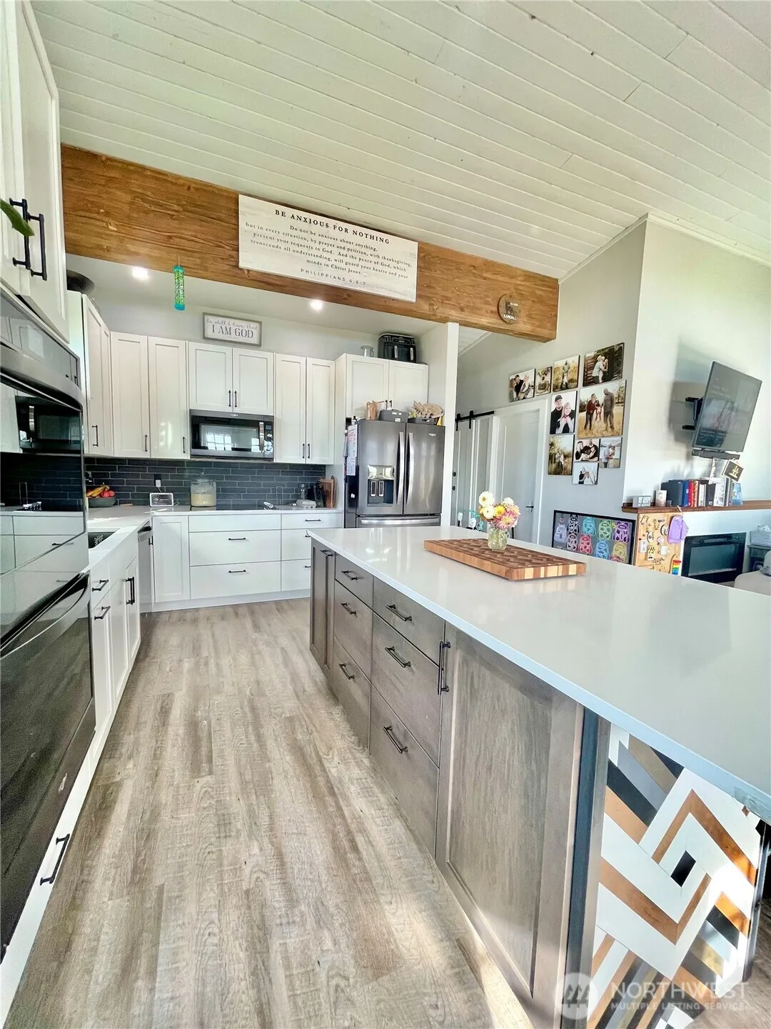 Omak 2021 SERENE VIEWS! Beautiful New Constr. – 2.01 irrg acres. 1512sqft 2bed/1full bath w/subway tiles, wood beams/VLT ceilings, tailored ironwork, custom island woodwork w/quartz counters, DBL wall oven, farmhouse sink, & beautiful backsplash. All appliances stay. 196sqft back deck w/overhead lighting, custom metal railing, &breathtaking view. 504sqft 2 car garage, fin. oversized bonus room & 256sqft back patio. Pasture w/barn & chicken coop. Pristine landscaping w/undergrnd sprinklers to wtr over 4ksqft of est sod. Multiple fruit trees, w/rose & other flowers. Lanscaping rock that surround grass. Yard w/privacy fence. Fenced garden w/raised beds & utility gates for large equipment work! Black/raspberry bushes. $424,900 MLS-233142/H-3637