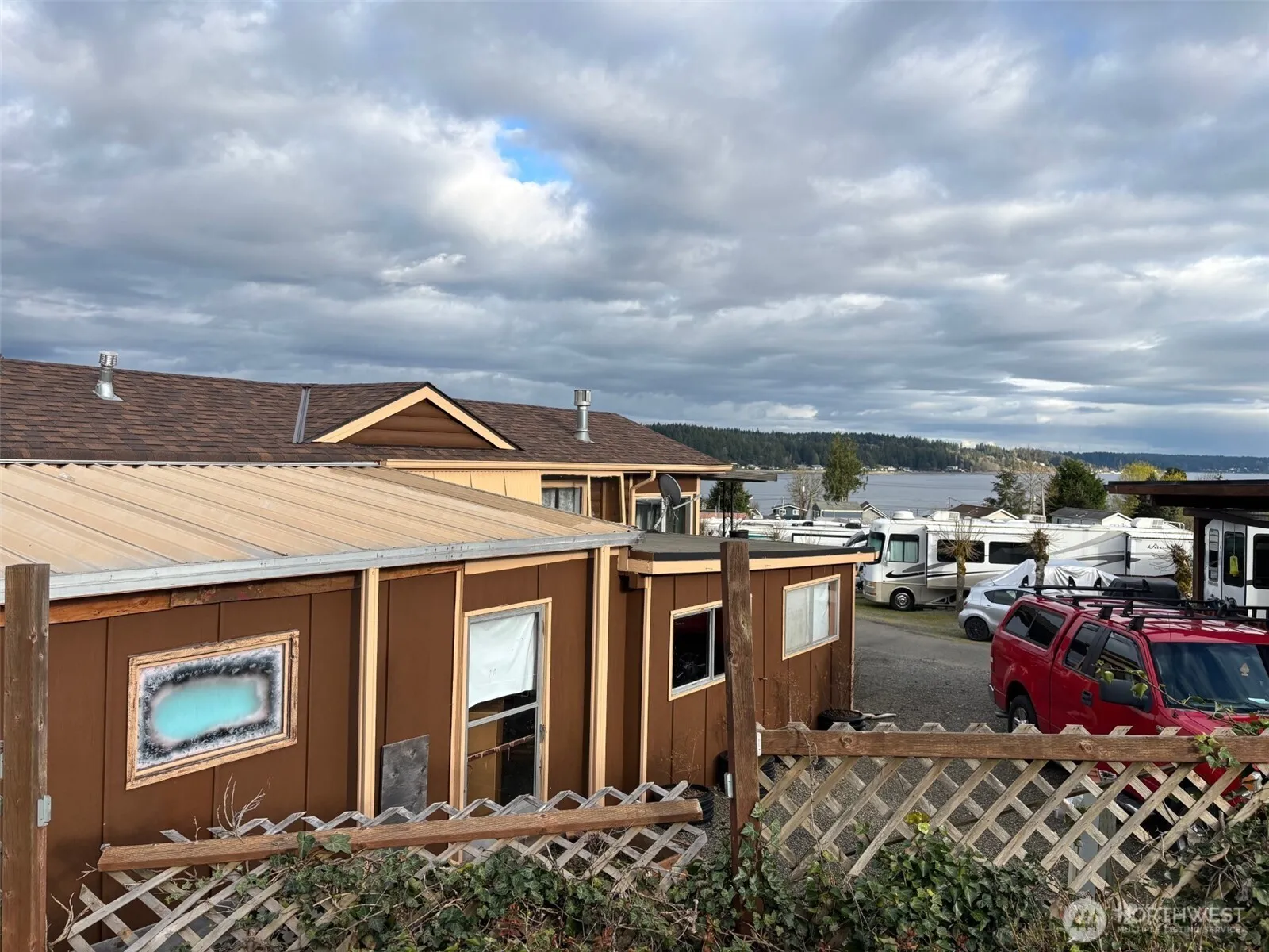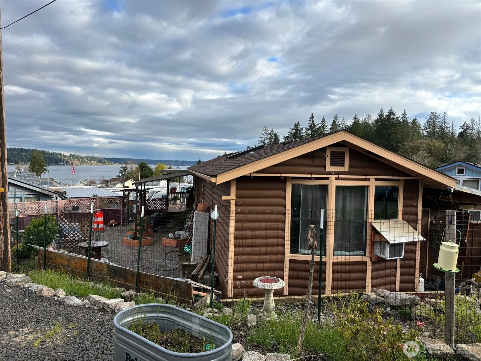 Nice mountain and sound view, manufactured single wide home in Allynview RV and MH Park adjacent to post office, market, restaurants and hair salon. Home needs some floor repair (estimated to be about $2,000) and will be an all cash sale sold as is. Park is 55+ age limit and one small dog or cat allowed. Buyer will need park approval. Nice attached garage and workshop behind. Most fenced back yard with garden space. Roof 4 years old, water heater 5 years old.