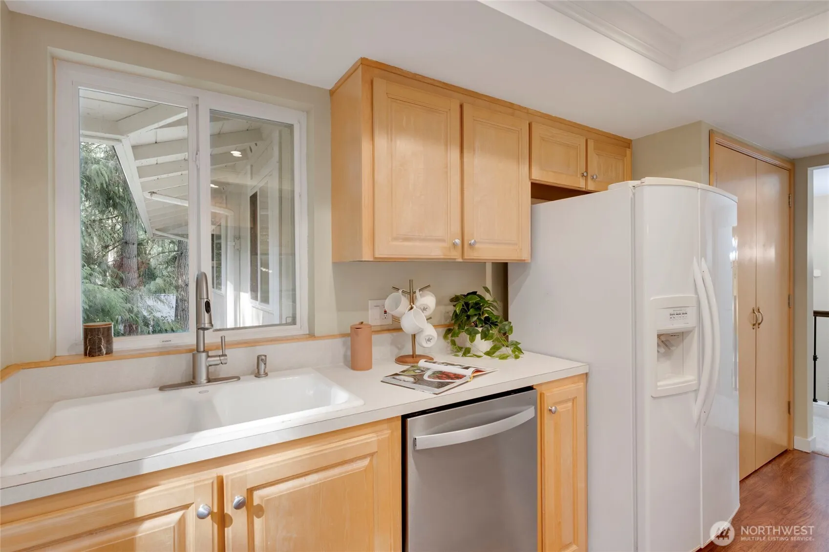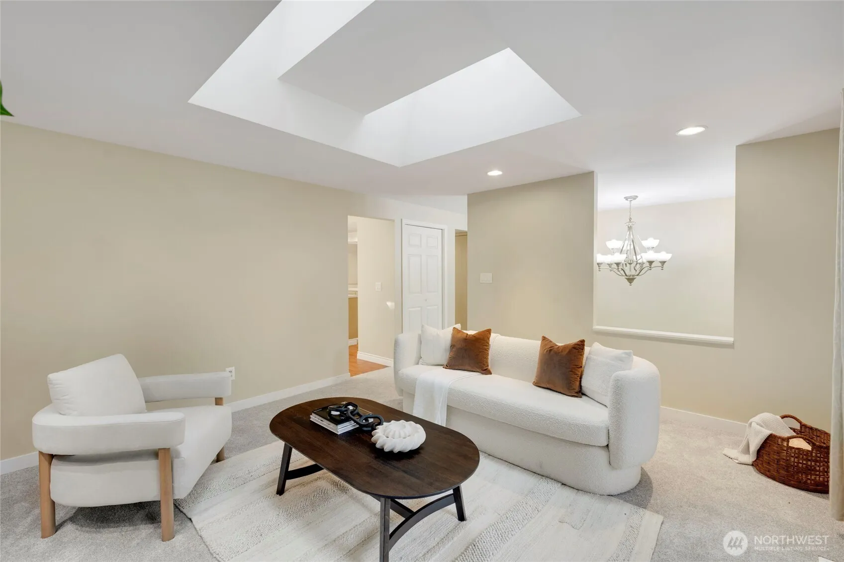 Looking for a multigenerational home or the flexibility of a 4-bedroom layout? This beautifully updated retreat sits on over half an acre with coveted Pine Lake beach rights! Surrounded by mature trees, it offers privacy, fresh interior paint, new carpet, and a spacious upper level with open living/dining and a large deck—perfect for entertaining. The upper floor also features the primary suite and two additional generously sized bedrooms. Downstairs, a large family room, second kitchen, and bonus room provide the ideal setup for a 4th bedroom, home office, or MIL suite. Zoned R4 with potential to expand. Enjoy private dock access and the award-winning Issaquah School District. Move-in ready with room to grow—welcome home!