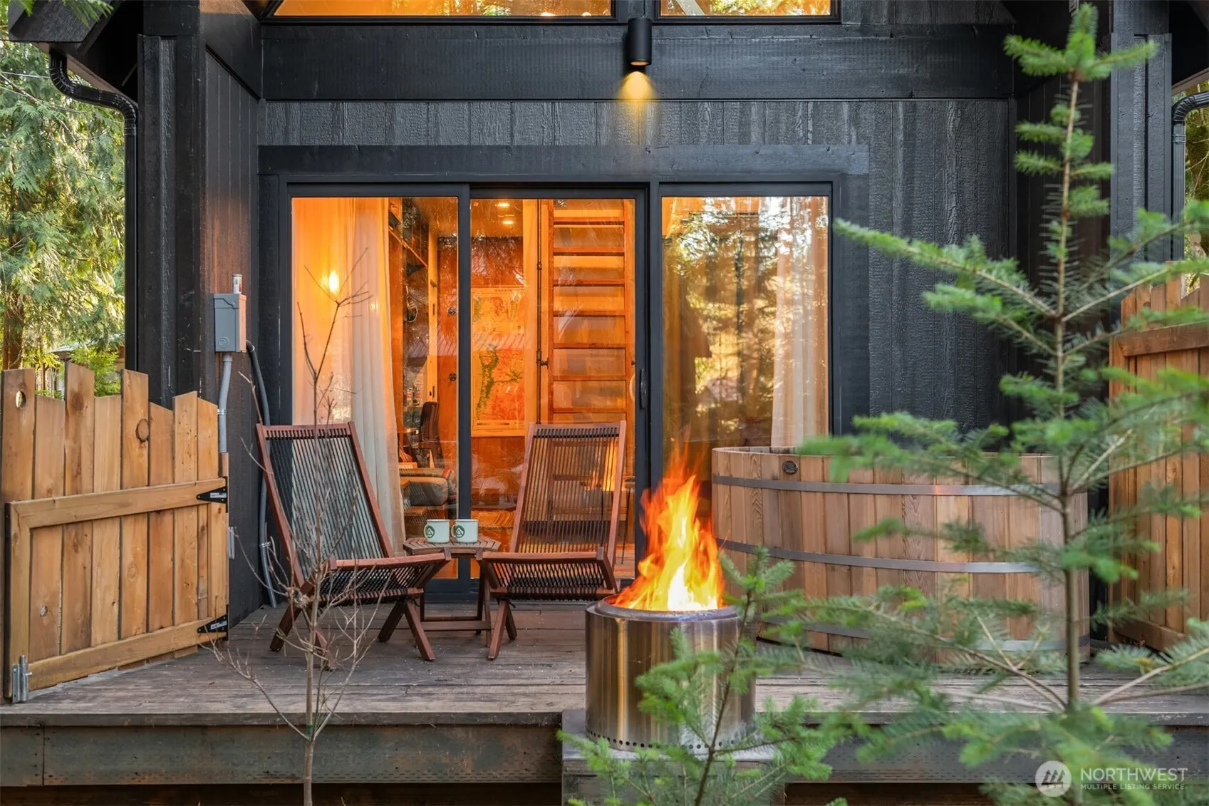 Meet the Chickaree cabin, identical twin to neighboring Pika. Designed by Den Outdoors and completed in 2022, this cabin packs in more luxury, features, and usable space than most homes triple their size. Chefs and foodies will rejoice in the professional-grade kitchen featuring a dishwasher, convection oven, induction cooktop, and microwave by Bosch. The bedroom loft features a queen-sized memory foam mattress and skylight perfect for stargazing. The living room includes a pellet stove and a wall of windows looking out on a private deck with outdoor seating, a private fire pit, and a two-person cedar hot tub. Sold fully furnished for a turn-key STR investment, this popular home with many repeat guests produced $74k in gross rents in 2024.