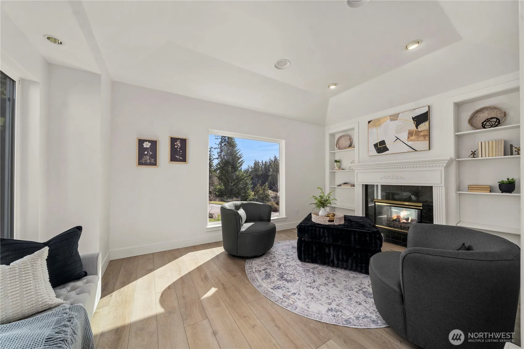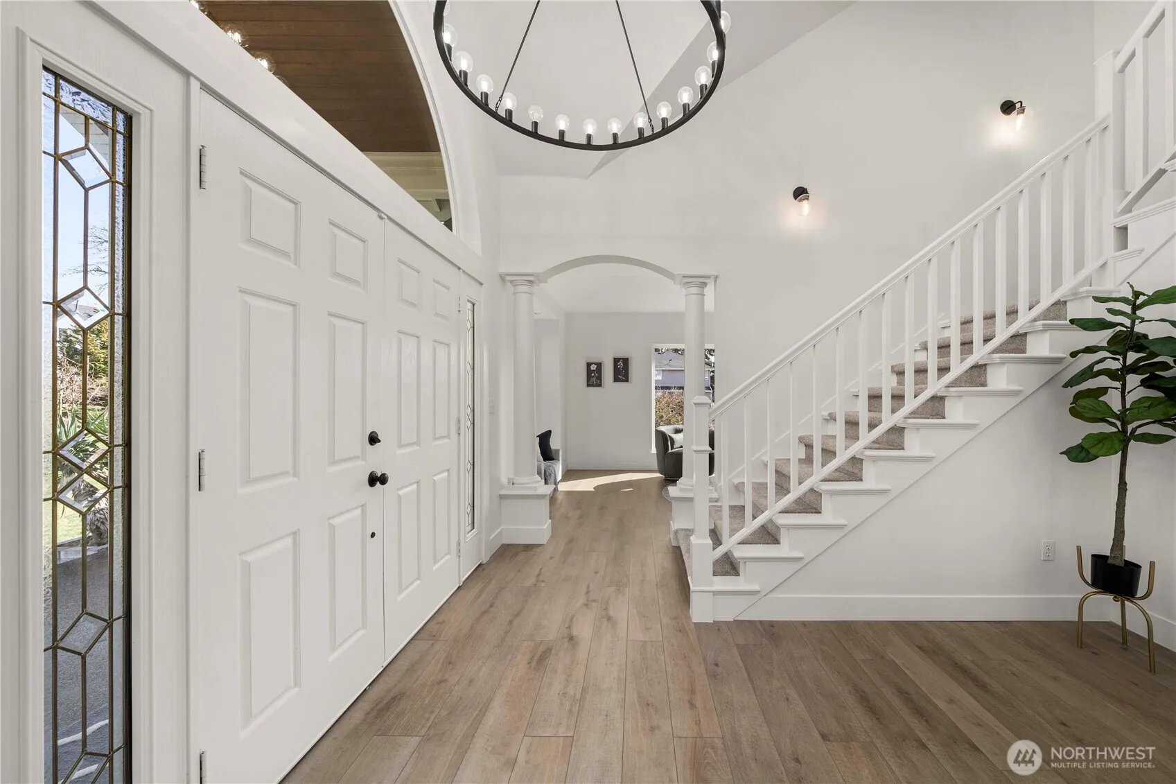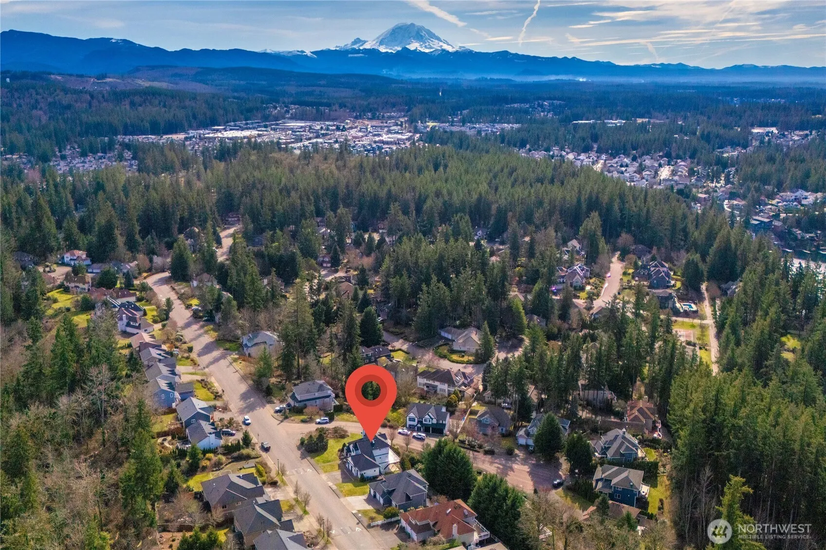 Welcome to this stunningly remodeled home in the Lake Wilderness Estates area, perched on a hill with breathtaking views! The sleek kitchen shines with quartz counters, stainless appliances, a wall oven, gas cooktop, and a side-by-side fridge/freezer. Luxury vinyl plank flooring, custom built-ins, new millwork & designer lighting add elegance. The main level boasts a bright family room with walls of windows, a fireplace & balcony, plus den. Upstairs, a spacious bonus room and a luxe primary suite await. The fully finished basement offers apartment-style living with full kitchen, family room, bath & private entry. New roof! Entertain on the expansive patio with a hot tub. Walk to parks, trails & Lake Wilderness! Sought-after Tahoma Schools.