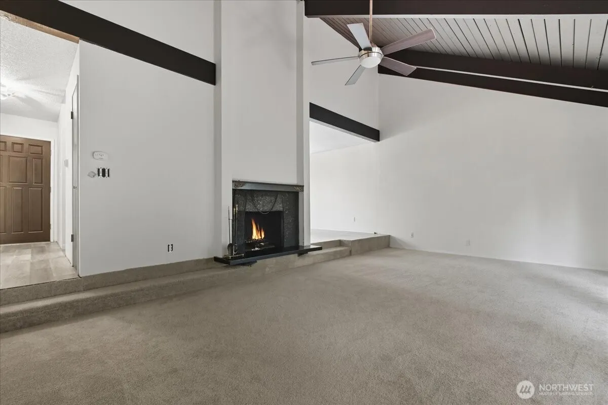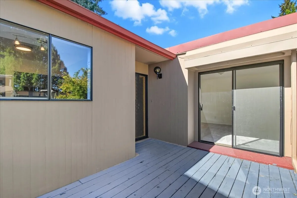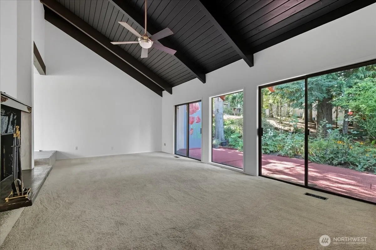 Sophisticated Regents Hill condo offering 1-level living with low-maintenance ease! This 2 BR / 2 BA, 1378 SqFt home offers an open floor plan filled with natural light from expansive near floor-to-ceiling windows and sliders that seamlessly connect the indoors to a private patio. Vaulted living room includes striking beamed ceiling and a fireplace, adding warmth on winter days. Updated kitchen features stunning wood accents, tile backsplash, pantry, eating bar, and stainless appliances. Spacious owner’s suite boasts a vaulted ceiling, dual-sink vanity, and walk-in shower. A 2-car garage adds everyday convenience. Blending style, comfort, and functionality, this home is an exceptional find in a desirable Vancouver community.