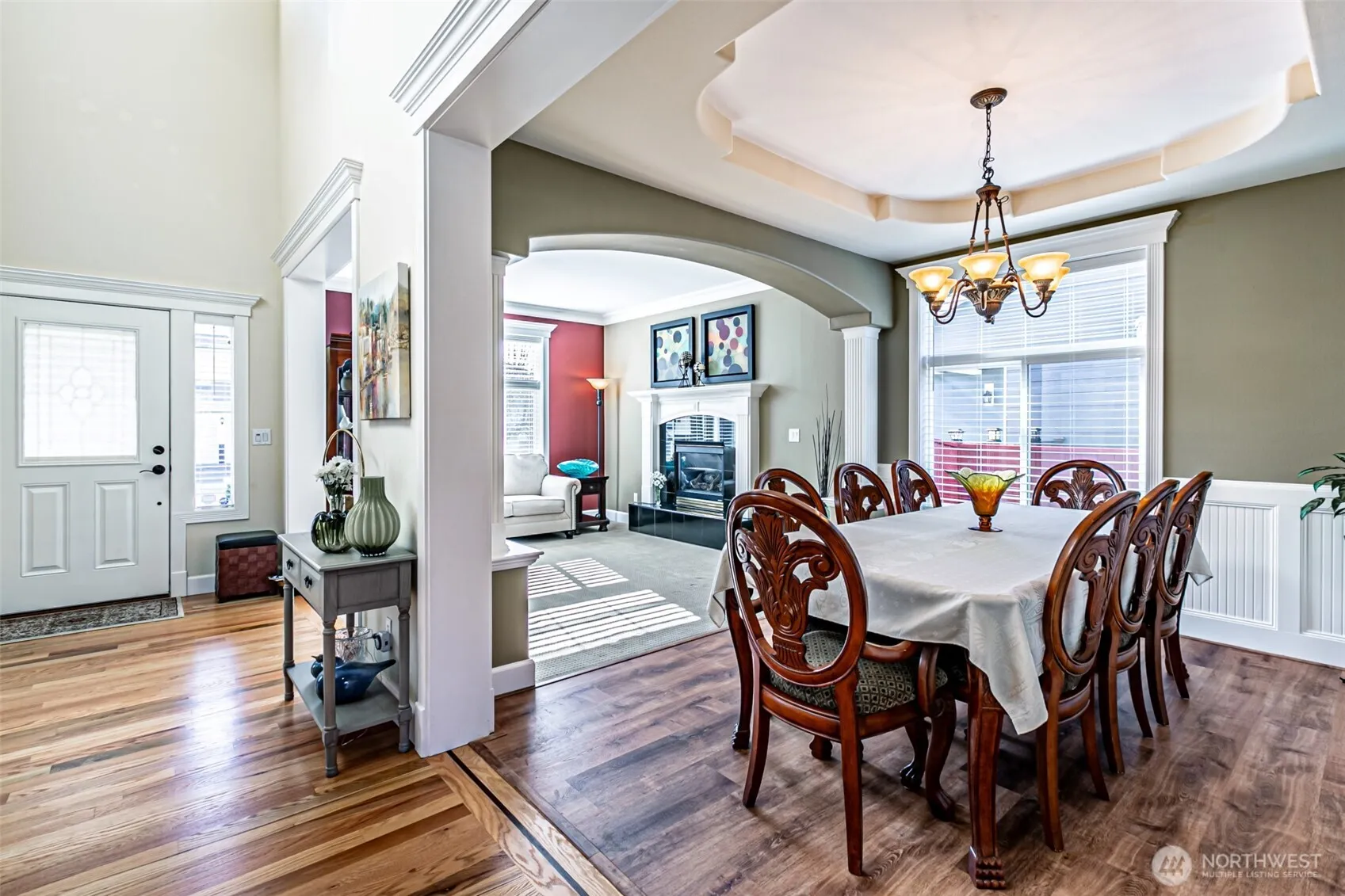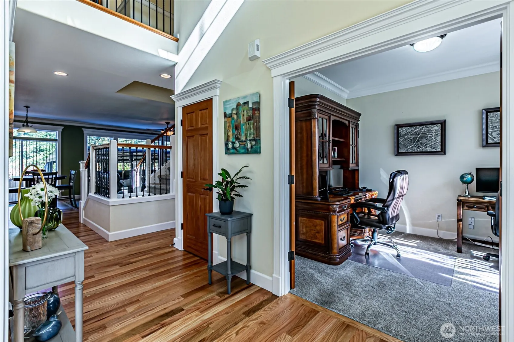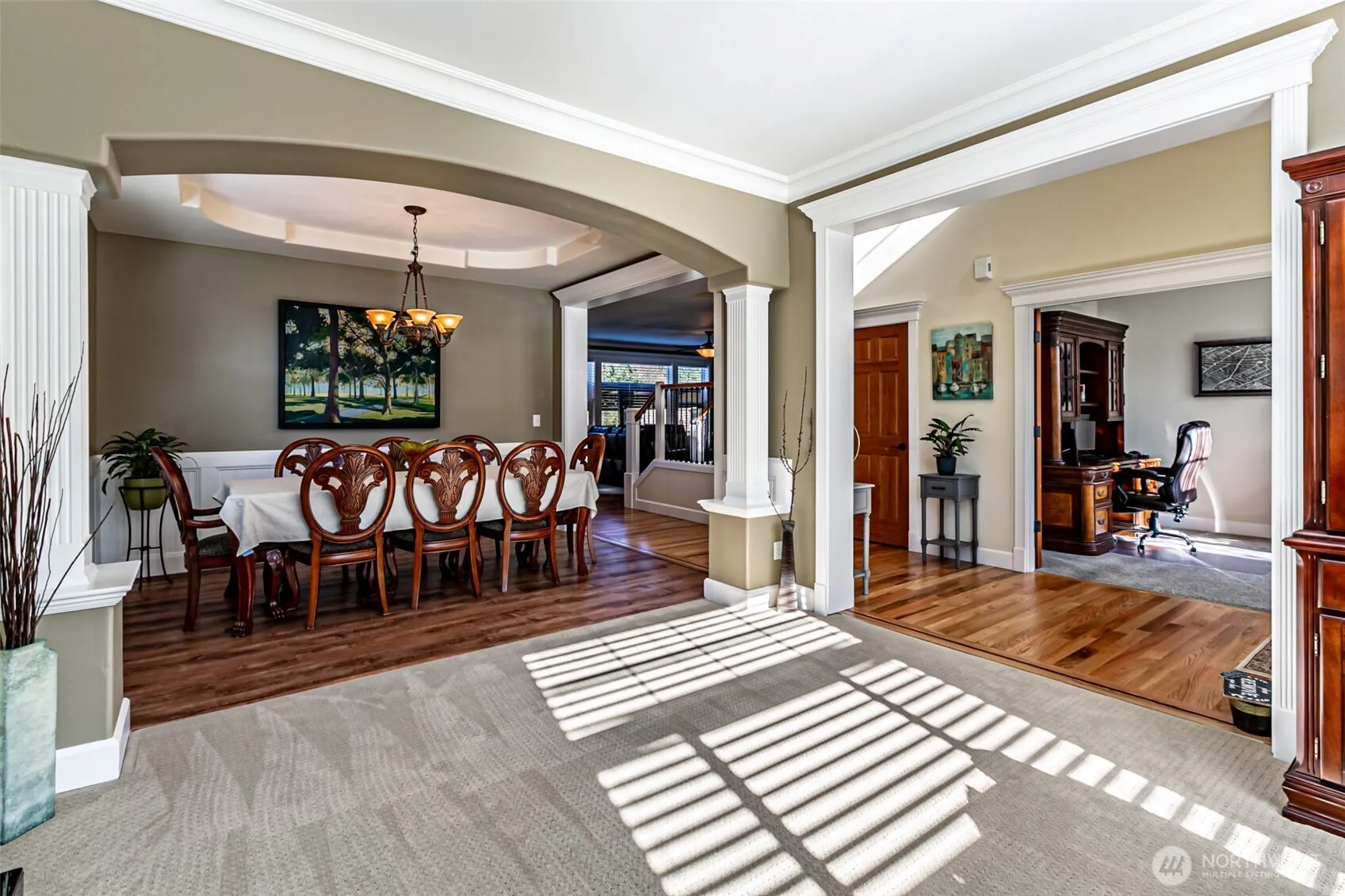 Welcome Home! This stunning two level home is an absolute dream – with crown molding and beautiful craftsmanship throughout. Large open main level with living room that flows into kitchen, formal dining room and front sitting room – great for entertaining! Upstairs is complete with four spacious bedrooms, two full bathrooms and a large utility room. Primary bedroom with walk-in closet, en suite bathroom and bonus sitting room. Four car garage with long middle bay creates opportunities for large vehicles, extra storage or work space. Water softener system connected. Level back yard with large covered patio up against a beautiful greenbelt. This is a top end property with so many upgrades and amenities – one of a kind in today’s market!
