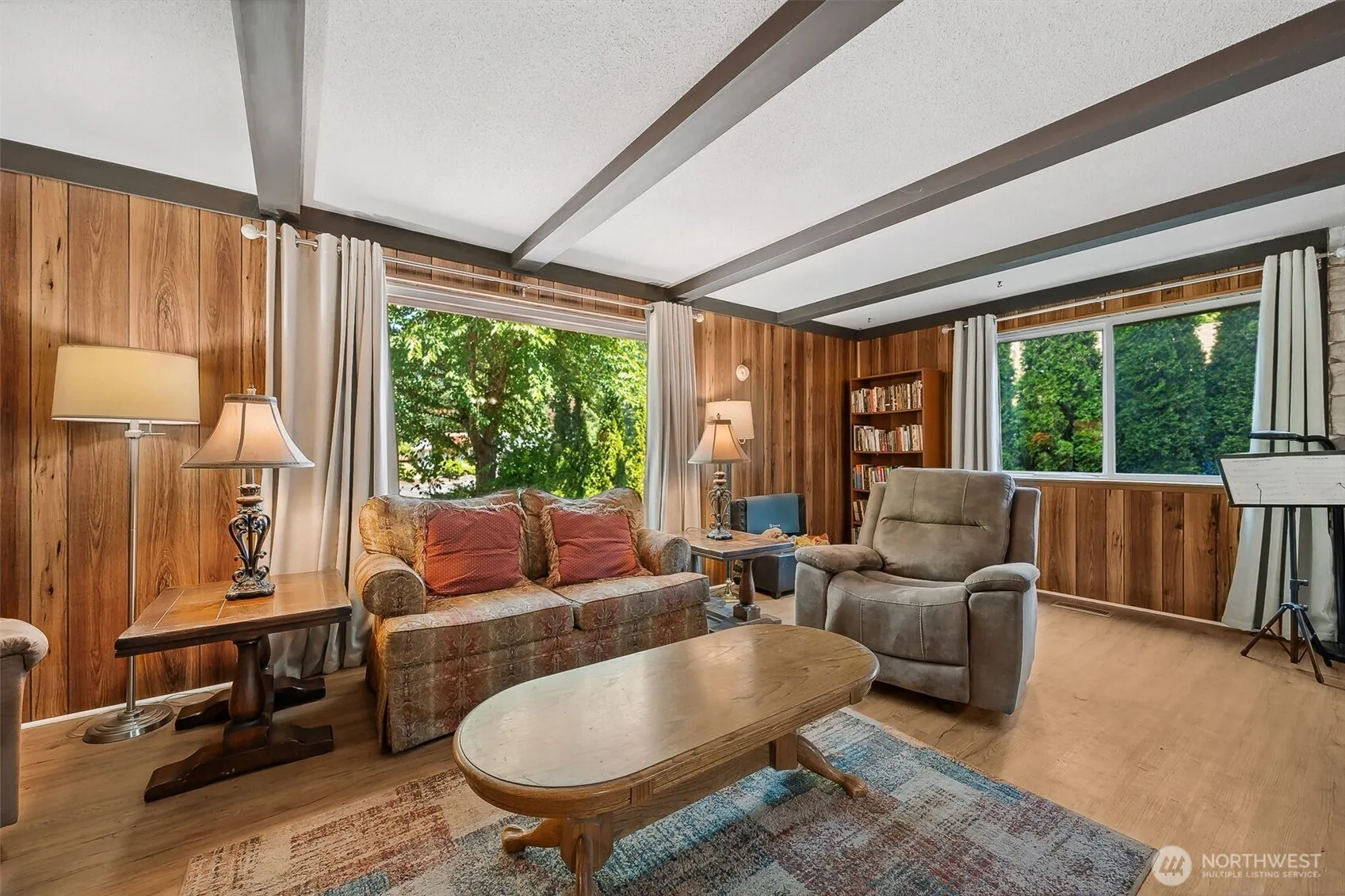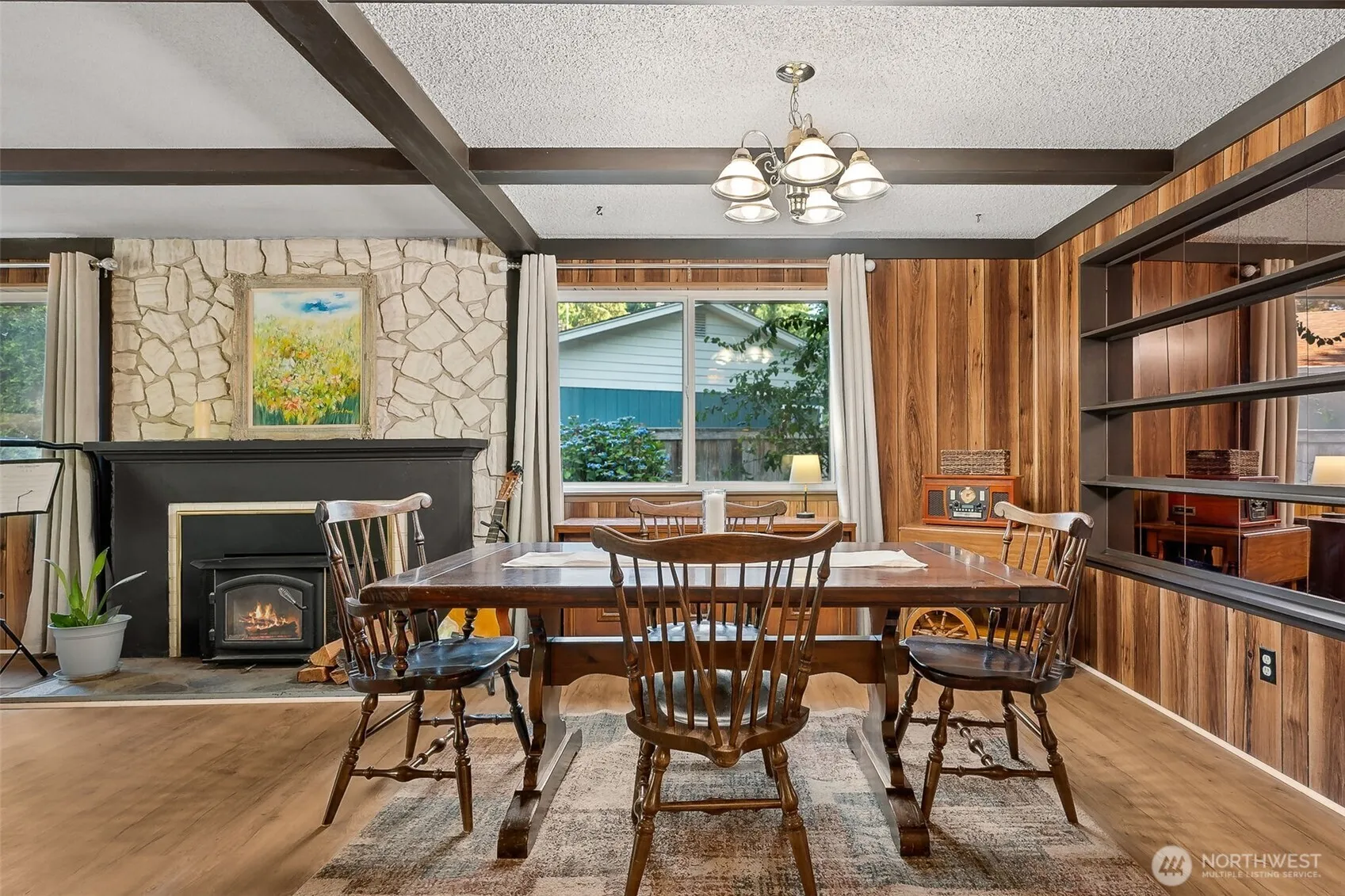 1-story living, just up from Chamber’s Bay! 2 bedrooms + private bonus room with 3/4 bath (or non-conforming 3rd bed suite)! Untouched architectural features many would pay to replicate. Cozy transitional exposed beam ceilings, flanked with built-ins, floor to ceiling flagstone hearth & vintage mirror tiles. Up-to-date on proactive maintenance such as 30yr roof (2015), HVAC servicing, newer water heater, heat pump, & exterior paint. Stylish & durable LVP flooring throughout the home. One of the few remaining streets in University Place with option to tie-in to sewer or stay on cost effective septic. Low maintenance landscaping & fenced backyard. Don’t miss this awesome opportunity to make this house a home in the UP School District!