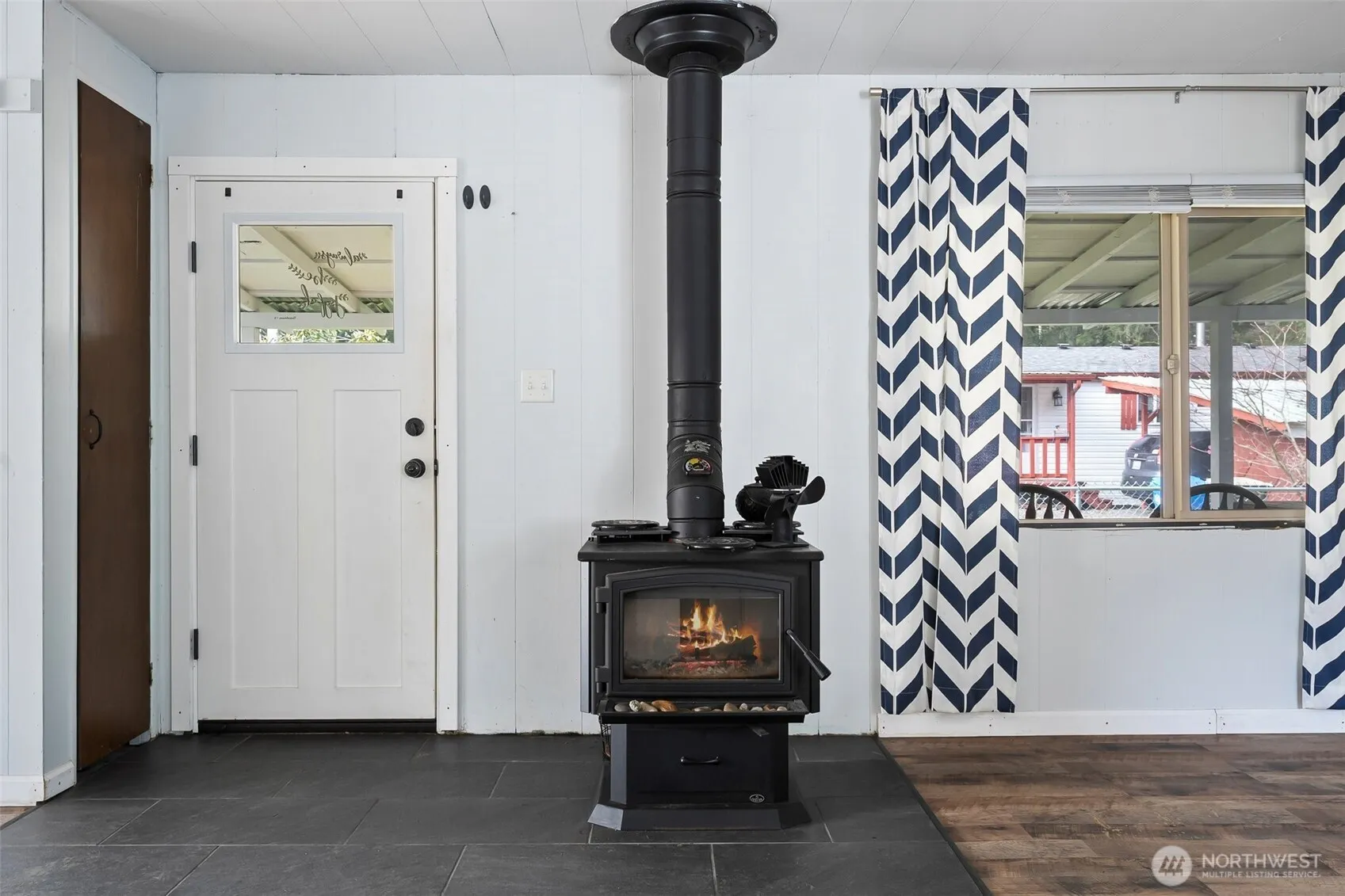 This home feels like a country setting. Two-bedroom, one bath home with bonus room for office/den/storage in desirable Whispering Woods all ages park. Newer flooring, open concept kitchen with all appliances included, newer windows throughout home, attached one car garage with workspace. Certified woodstove keeps this home cozy year-round as well as a ductless heat pump for heating/cooling. This well-maintained home is move in ready. Home backs up to wooded area for added privacy with a patio in back and a covered front porch to relax or entertain. Yard is fully fenced on the one side. Monthly fee covers water and sewer. Come view your new home today!