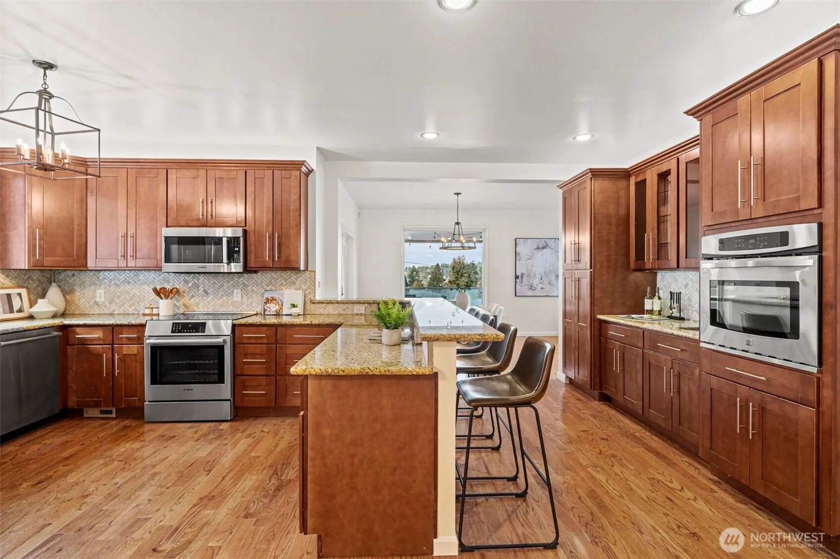 Experience spacious living in this distinguished 6 bedroom 4.5 bath home! Encompassing 4,652 sq ft, this home offers an open living space, abundant parking & enhanced entertaining possibilities. Primary suite w/radiant flooring, soaking tub & walk-in closet. Income-producing ADU or multigenerational living! 4-bay garage/shop with ductless heat pump is a haven for hobbyists & mechanics, featuring 80 gal air compressor, 220V plug-ins & ample overhead storage. Equipped w/2 tankless water heaters, high-efficiency furnace, RV parking, dog run, chicken coop, shed & garden w/drip irrigation. Outdoor deck perfect for al fresco dining while enjoying territorial views. Space for home business opportunity & just minutes from I-5 & HWY 167. Tour today!