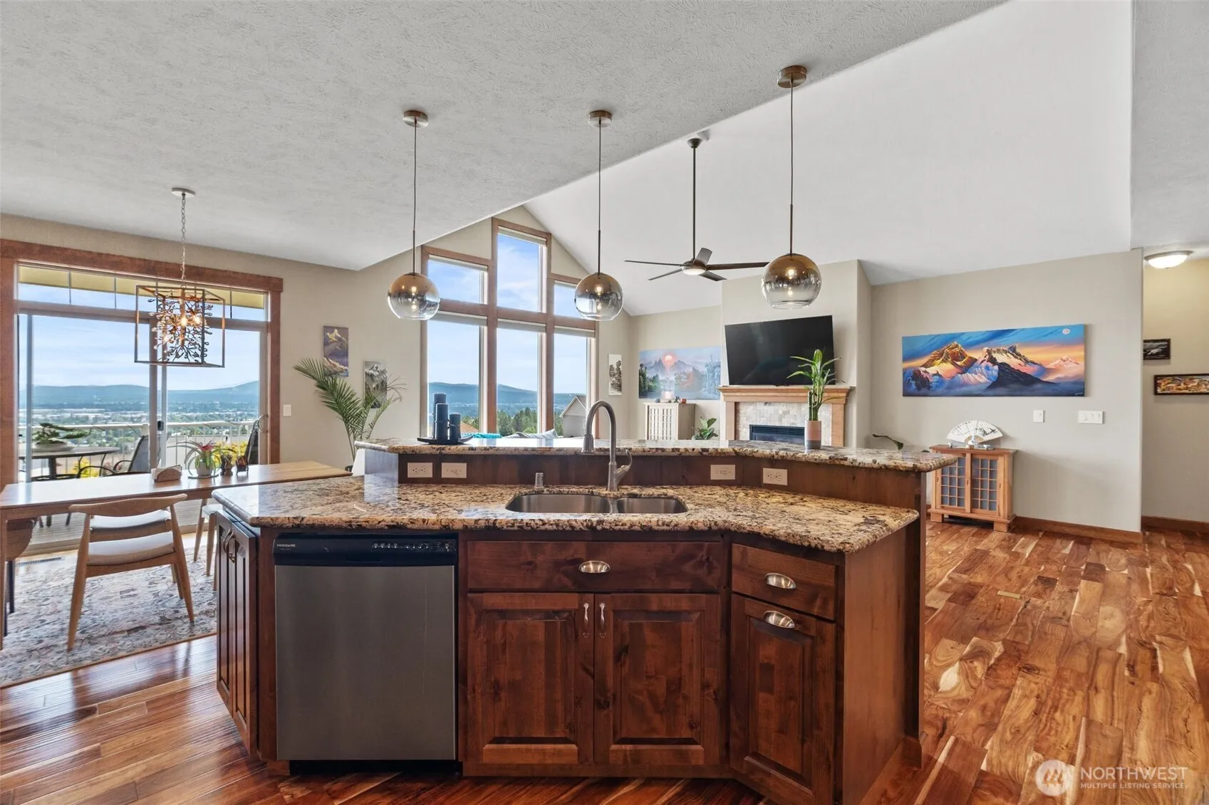 Imagine relaxing on the covered deck, overlooking stunning mountain vistas by day and twinkling valley lights by night. Nestled on a quiet cul de sac in the coveted Northwood community with easy access to Spokane and Coeur d’Alene. Minutes from shopping, dining and the river. Made for luxury, entertaining and single-story living, the great room is ideal for gathering by soaring windows on luxurious floors. Cook with ease with custom cabinets, granite counters and walk in pantry. The en suite primary bedroom is a true retreat with views and a huge walk-in closet. 2 more bed, bath on the main level! Massive daylight basement perfect for entertaining and an in law suite. Lush mature landscaping and a 3 car garage top it off!