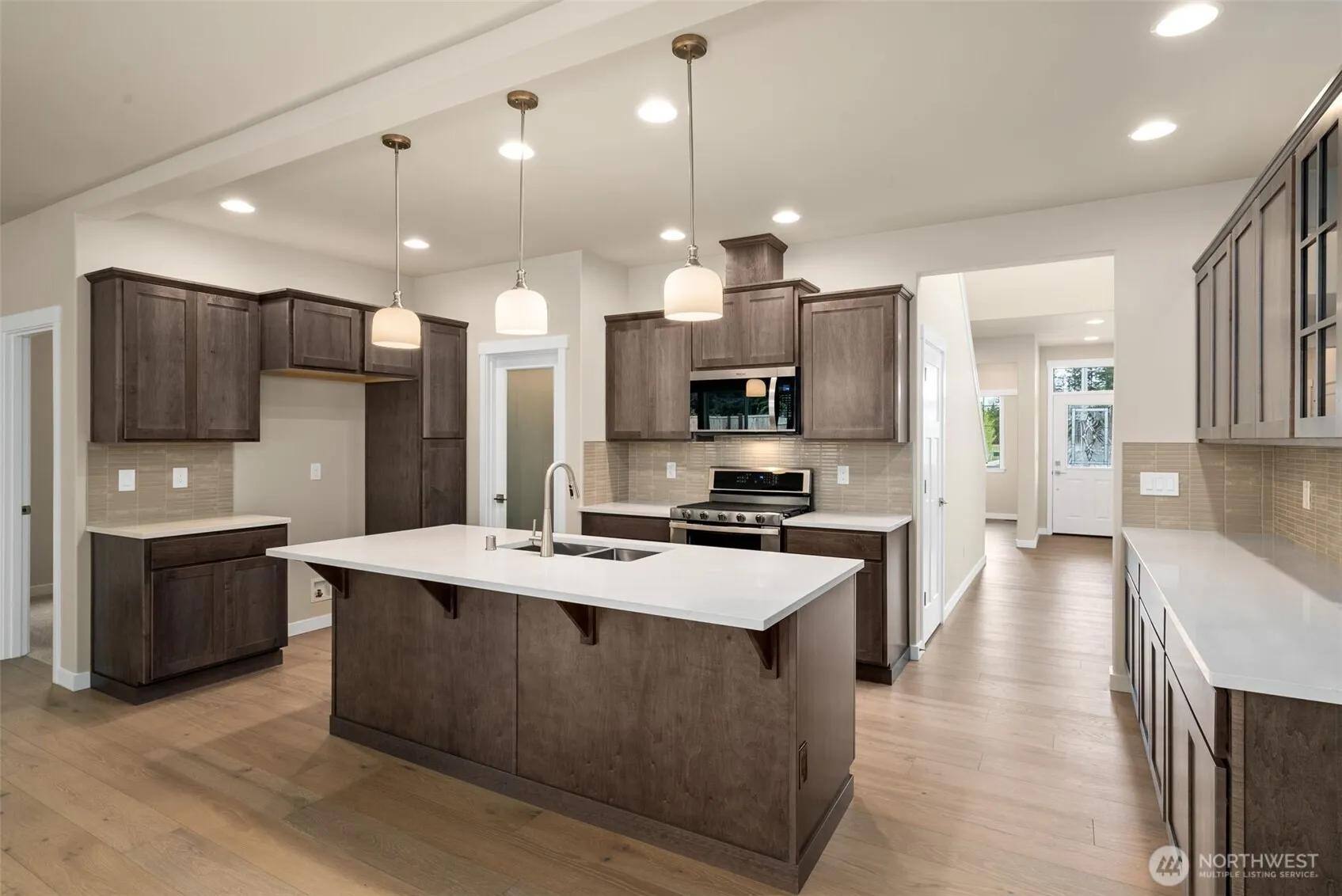 Experience luxury in this exquisite Move In Ready Skyview Estates home by Rob Rice Homes! The Dogwood-2591 sf features a spacious kitchen adorned with “Charcoal” Maple cabinets, quartz countertops, a full tile backsplash, a gas stove with double oven, and a walk-in pantry. Expansive hardwood floors fill the entry, kitchen, dining, and living room, plus quartz counters in all baths & utility room. This plan has a main floor den and an expansive upstairs bonus room for flexibility & functionality. Outdoors, enjoy a covered patio, full privacy fencing, and a landscaped yard. Energy efficient features include solar panels, a heat pump & hybrid electric water heater. Super close to I-5, Costco, & schools.