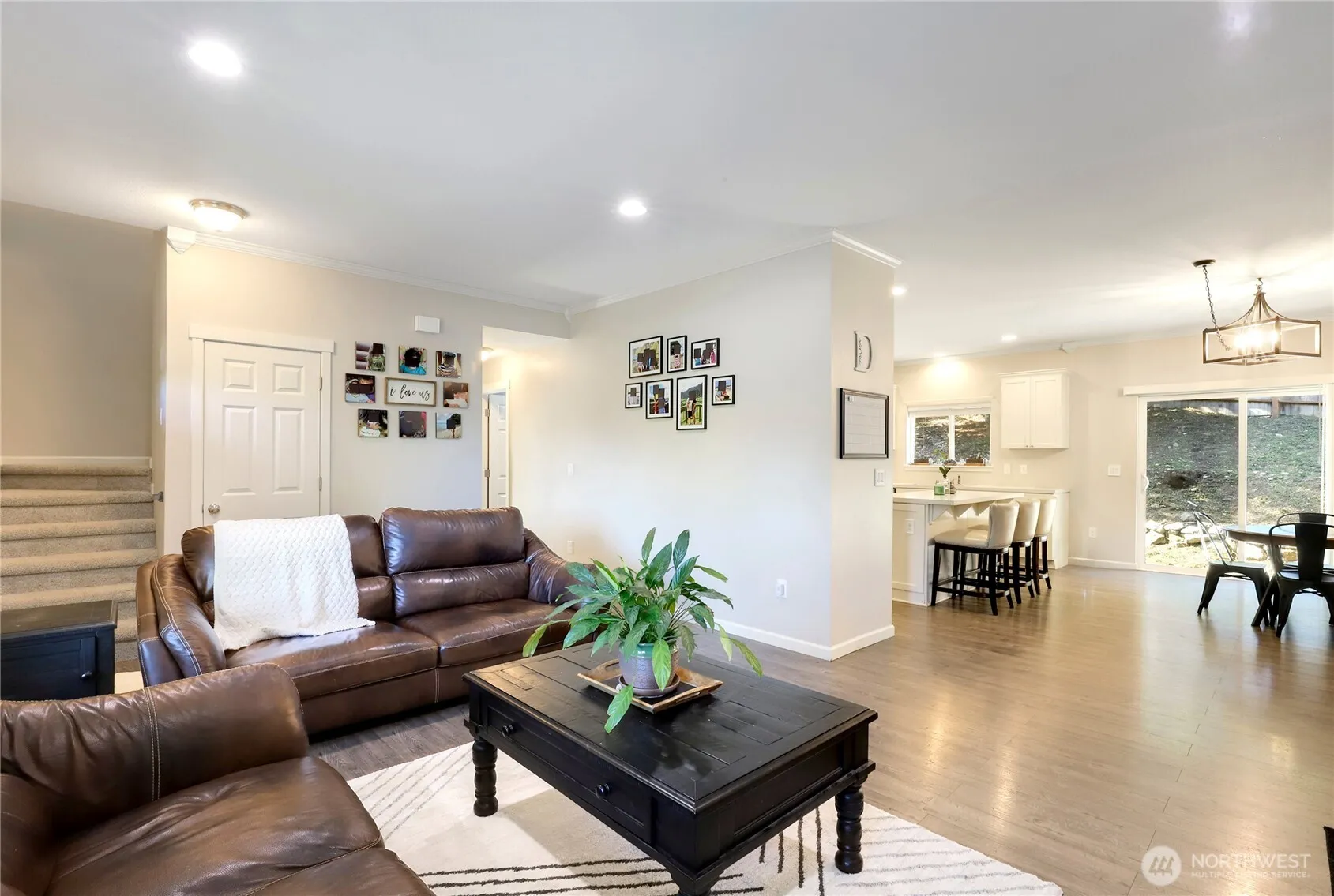 Welcome to this newly built multigenerational home offering thoughtful design and modern comfort. With two primary bedrooms, including one on the main level, plus two additional bedrooms and a spacious loft upstairs, there’s room for flexibility and function. The gourmet kitchen boasts a large island, walk-in pantry, soft-close cabinets, and stainless steel appliances. Enjoy 9-ft ceilings and brand-new laminate flooring on the main. Additional highlights include a covered front porch, upper-level laundry, smart thermostat with heating and A/C, and a fully wired low-voltage system. Outside, There’s plenty of space for backyard chickens, and a garden. Complete with a two-car garage and shared well.