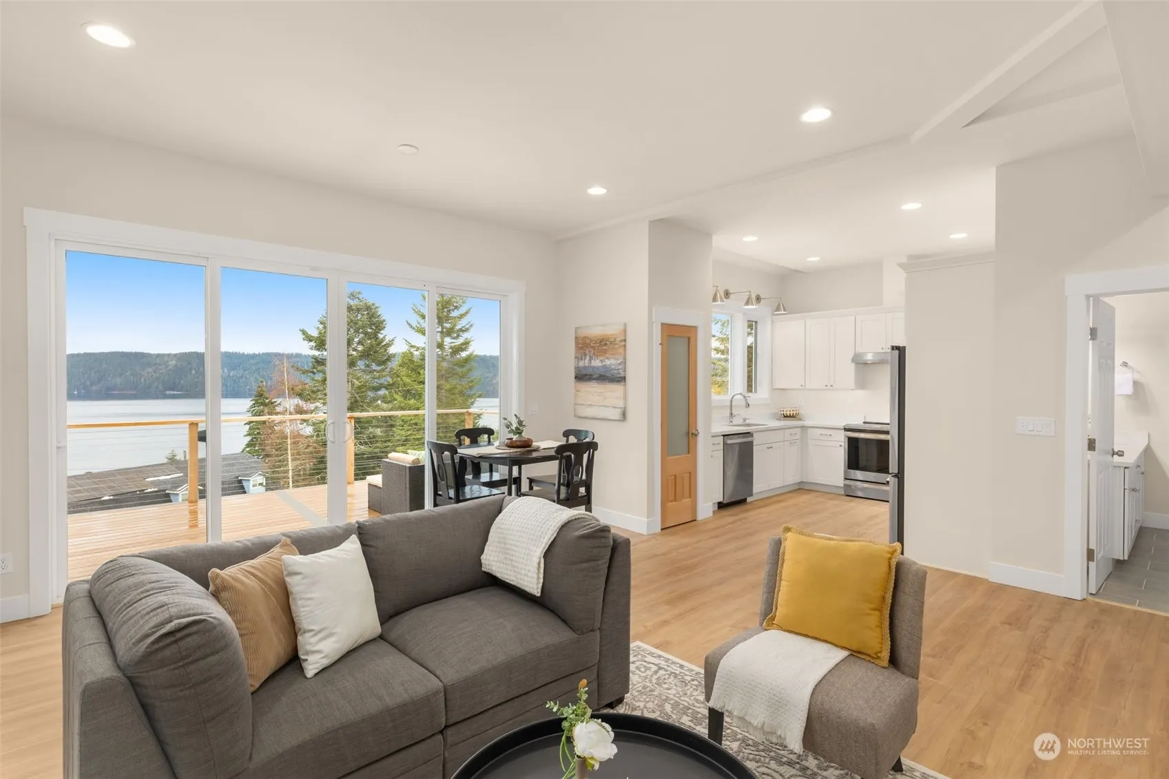 Introducing a stunning new construction home offering breathtaking views of the majestic Hood Canal. This beautifully crafted residence is the perfect blend of modern luxury and serene natural beauty. This thoughtfully designed brand new home features 2 bedrooms and a bathroom on the main level and a primary suite and primary bathroom on the upper level with its own private deck. The open-concept living area connects the kitchen, dining space, and living room. Enjoy meals with a view from the dining area or step out onto the deck to soak in the fresh air and panoramic scenery. 1 Year New Construction Home Warranty. HOA includes full access to beautfiul clubhouse, private beach, and pier.
