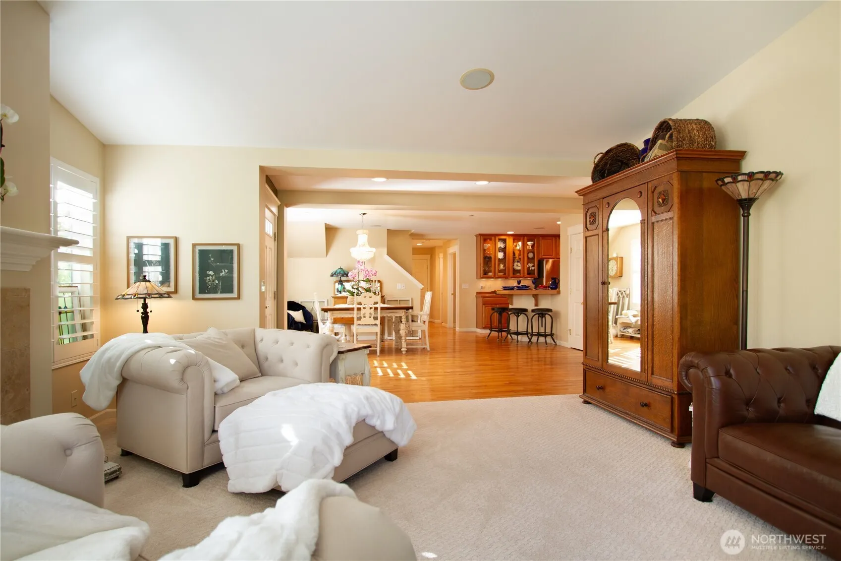 Enjoy the quiet convenience of condo living in this rare end-unit home at Lakeland Village. 2,281sf w2BR/2BA, spacious Bonus Room, and office, this residence is designed to make daily life simple and stress-free.You’ll appreciate thoughtful details like wooden plantation shutters throughout, abundant storage, new appliances. Primary Suite features Karastan carpets & refreshed 5-piece bath, while a high-efficiency furnace & heat pump (2018) keep the home comfortable year-round.Oversized 2-car garage w/durable epoxy-coated floor. Lush landscaping creates a peaceful backdrop for your private patio, perfectly placed on the 5th fairway.