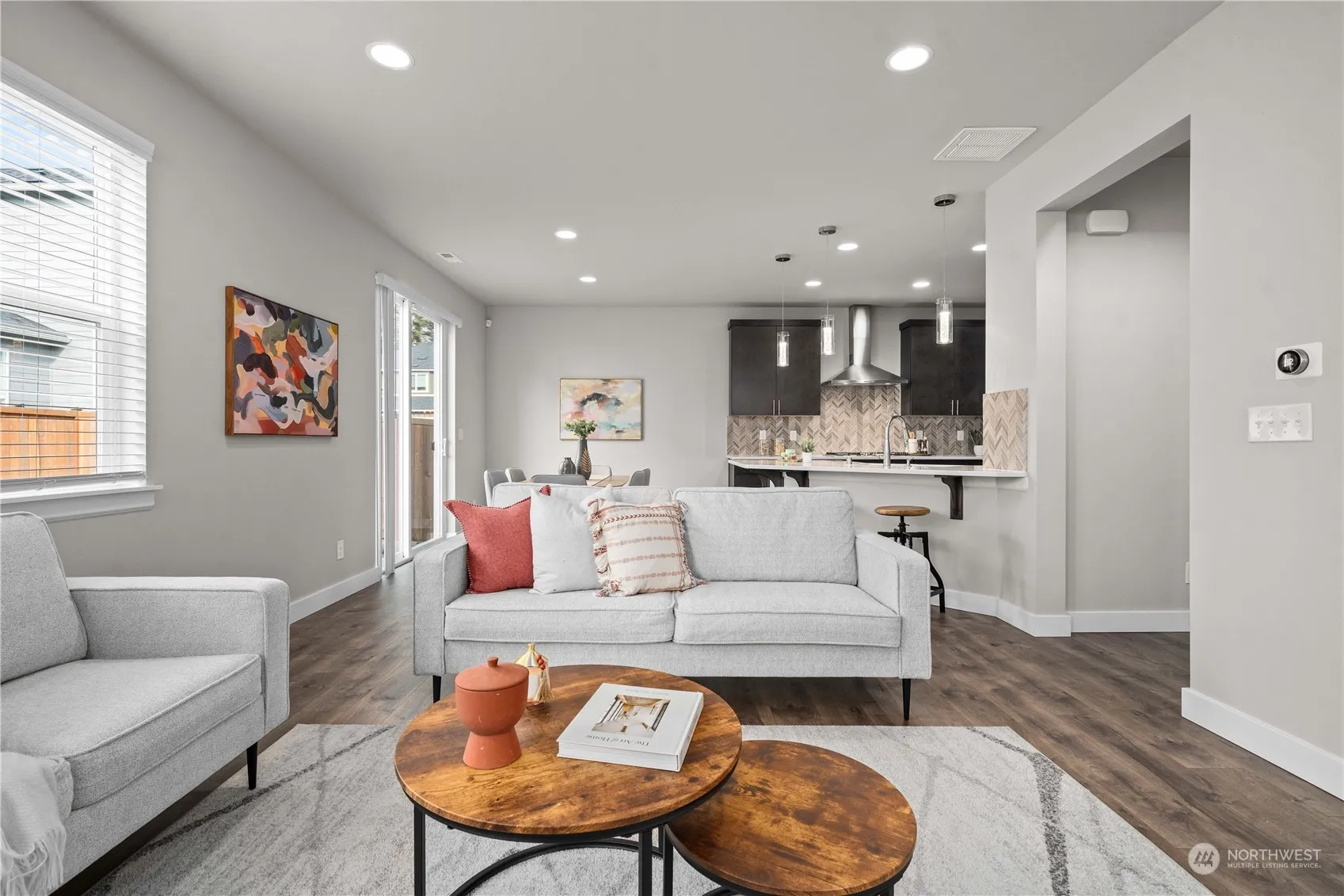 This beautiful 3-level home, built in 2018, is truly a gem! The kitchen is a chef’s dream with a gorgeous backsplash, walk-in pantry, gas cooktop, stainless steel appliances, and ample cabinet space. The cozy living room features a gas fireplace and a unique custom tile wall. The main-level primary suite offers privacy and includes a luxurious ensuite with double vanity, a dedicated shower, soaker tub, and walk-in closet. Upstairs, you’ll find three spacious guest rooms, a guest bath, laundry room, and a large bonus space. Enjoy stunning views of the mountains and Mt. Rainier, plus A/C and premium upgrades throughout. Conveniently located near LightRail, I-5, and I-509, with a new fridge, dishwasher, and garage door (10-year warranty).