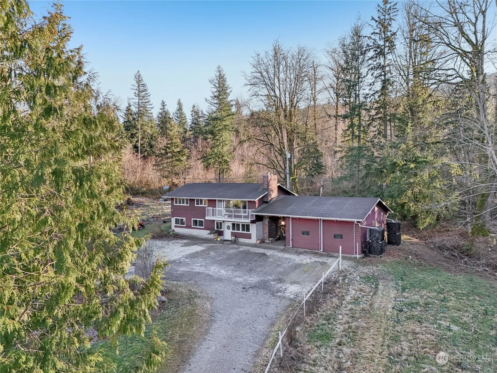 Imagine living on a level 5 acre farm with no HOA, only minutes to all that Snoqualmie Ridge offers & just a 5 minute drive to I-90! Come be surrounded by nature & privacy! This 2000 sqft home has been updated (beautiful kitchen). The downstairs may have been a separate living space (duplex or MIL style) in the past. There is a huge 2 car garage w/a studio. Be sure to check out the stable with stalls and tack room – great for animals or just a place for storage, hobbies, or a home business! Land could be pasture, garden, or go natural & be low maintenance. Seller has planted over 2,000 Christmas trees with plans to run a small U-Cut Christmas tree business. Seller can share draft business plan. Seasonal creek. Pre-inspected & move in ready.
