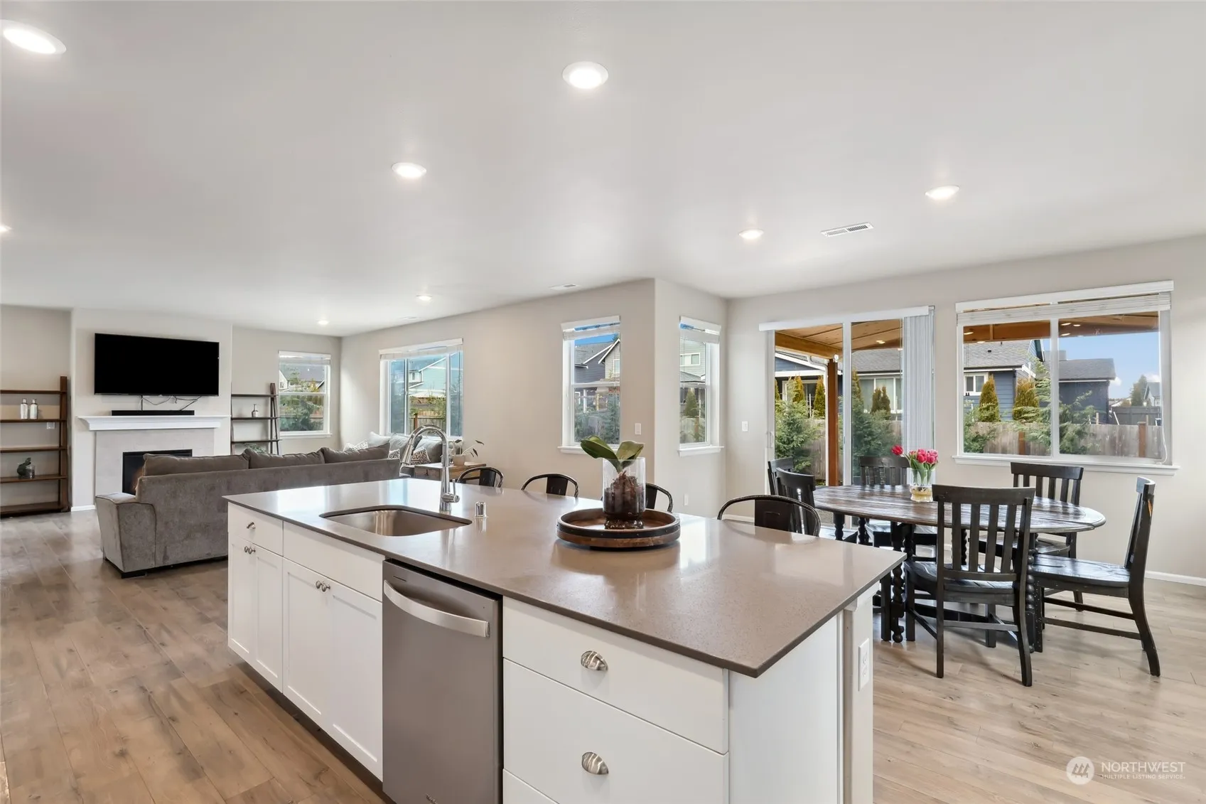 The Lennar “NEXT GEN” home, offering a Home Within a Home, blends modern elegance with ultimate functionality. Large windows and an open layout bathe the main living space in natural light. The chef’s kitchen boasts quartz counters, SS appliances, & sleek finishes-perfect for entertaining. The spacious living & dining areas flow seamlessly, creating a warm and inviting atmosphere. Upstrs features a peaceful & comfortable primary suite with a Prvt en suite, two additional BD, a loft, and Lndry. The private “NEXT GEN” suite offers its own entrance on the main level, kitchenette, living area, BD, BA, & W/D-ideal for guests, rental income, or home office. A Cvd patio & fenced yard complete this versatile home. Don’t miss this rare opportunity!