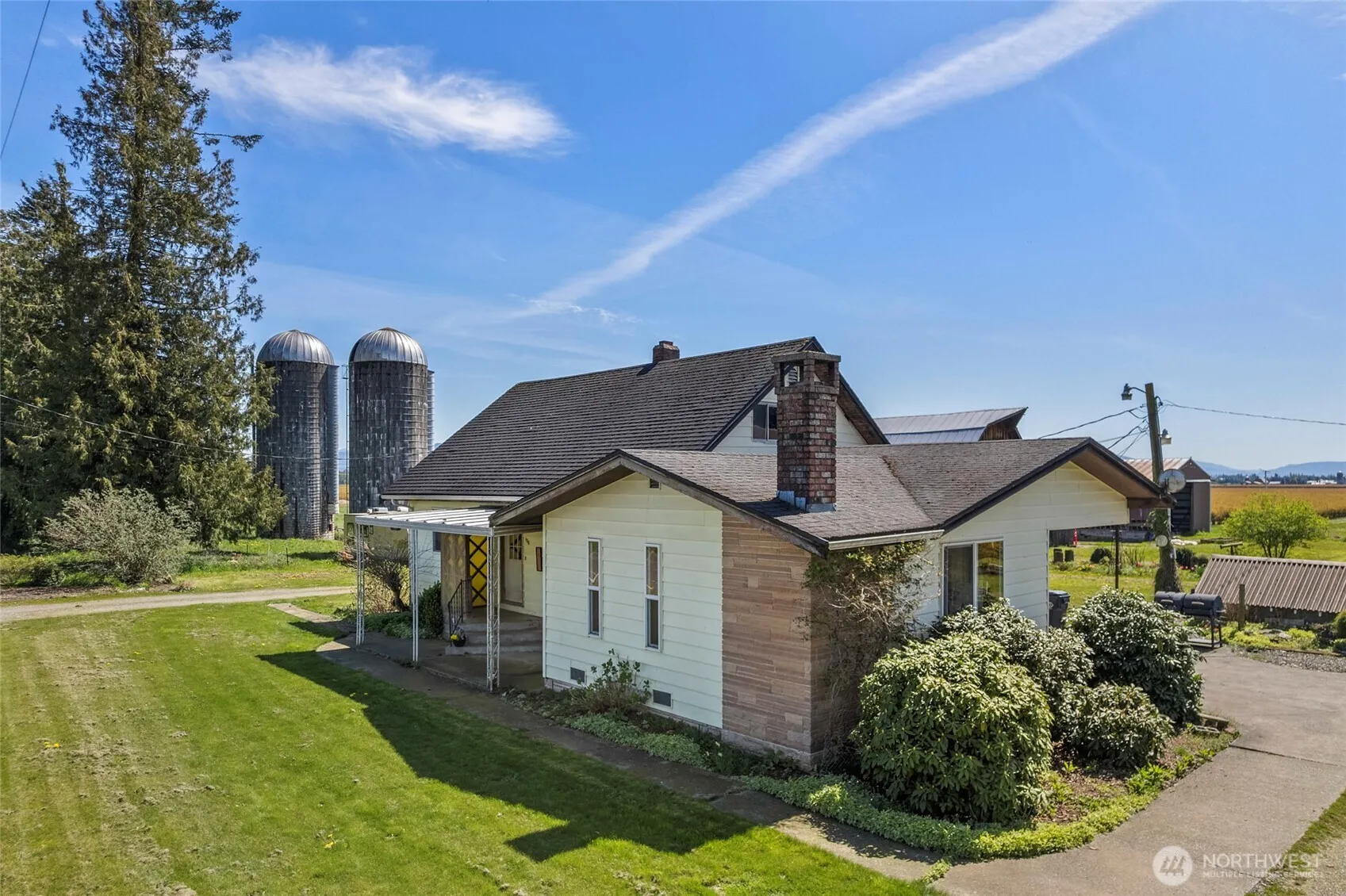 $10,000 Buyer Credit Available! Welcome to your own peaceful country retreat on 4.93 acres just outside Lynden! This charming 4-bed, 1.75-bath farmhouse features a newly remodeled bathroom, an updated kitchen, and a cozy wood-burning fireplace in the family room. The partially finished basement offers endless possibilities, while multiple outbuildings, barns, storage spaces, and silos provide great opportunities for hobby farming, livestock, or rental income. With transferable water rights, open pasture, and room to grow, this property is perfect for those looking to embrace country living. Conveniently located with easy access to North Whatcom County and Canada, this is a rare opportunity to create your dream farm or homestead!
