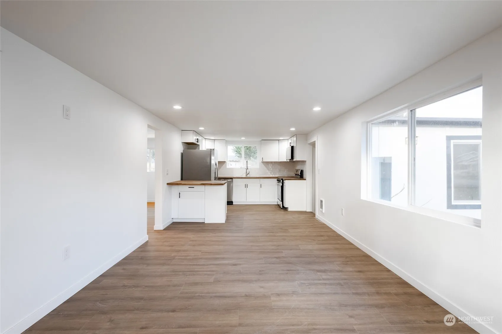 Step into modern living with this beautifully remodeled 3 bedroom 2 bathroom home located on a corner lot!Remodel features an inviting and open concept living area, two walk in closets, brand new plumbing and electrical, stainless steel appliances with butcher block countertops in the kitchen just to name a few of the long list of upgrades/renovations. Property has ample parking space with 2 gravel driveways and an attached two car 600 square foot garage. Located near SWHS and downtown Sedro it makes for a convenient commute. Come experience the peace & tranquility this home offers!
