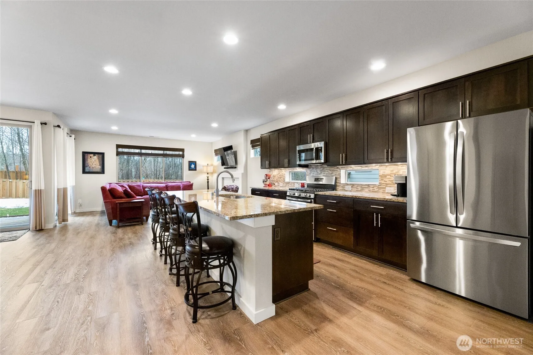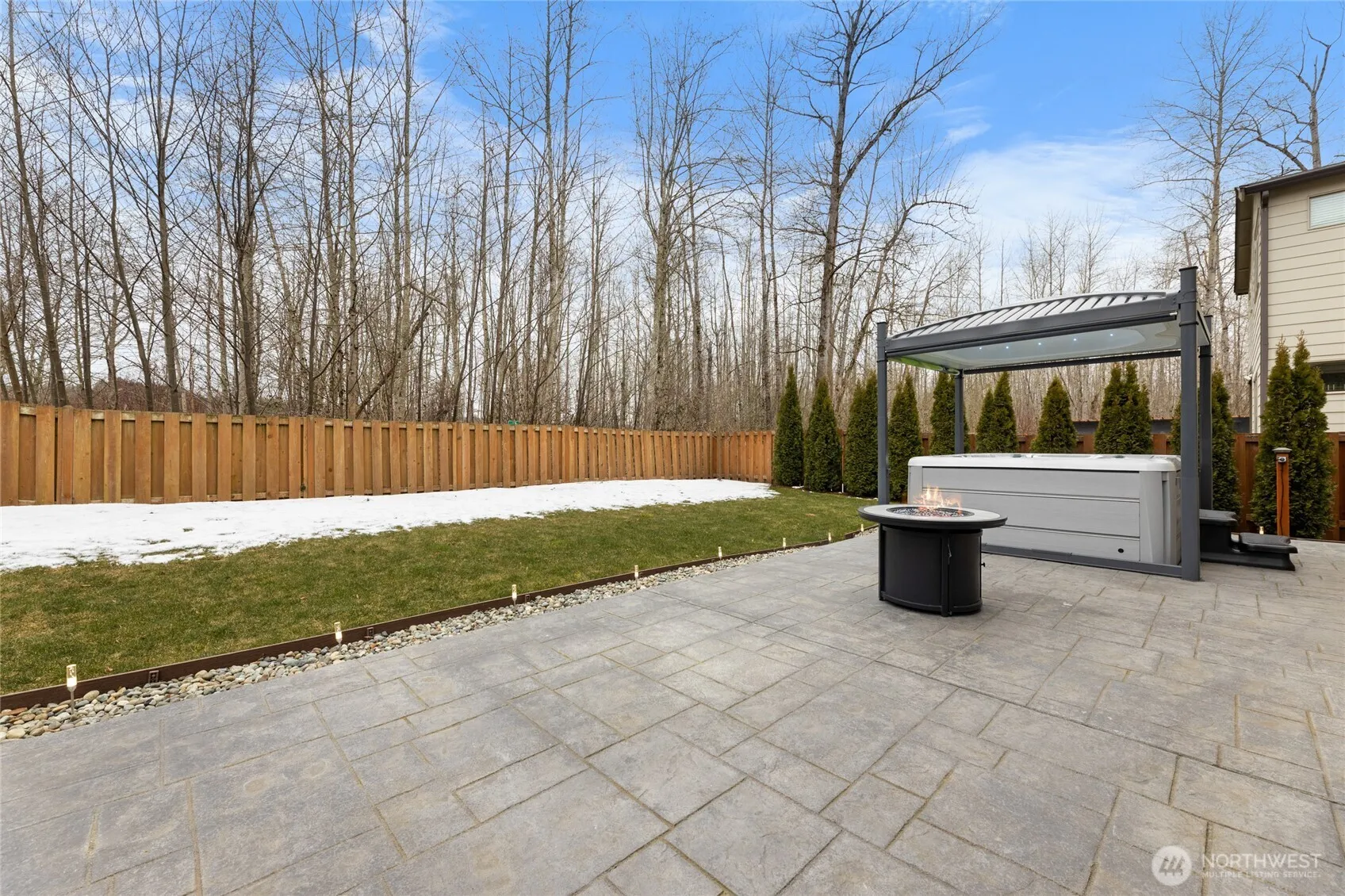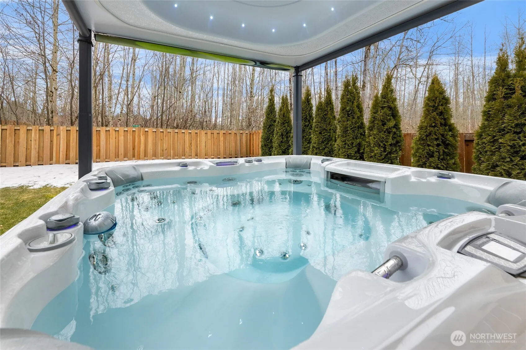 Luxe Greenbelt Home – PRIME Opportunity! This better-than-new stunner offers unmatched privacy & tranquility located in a cul de sac! Immaculate 4-bed|2.5-bath home features a dedicated office, loft, & an open-concept layout. The soaring foyer leads to a gourmet kitchen w/ sleek granite, Stainless Steel appliances & a spacious island. The inviting living & dining area boasts a cozy gas fireplace & dual sliders to a covered porch & stamped concrete patio w/ gas line for a BBQ or generator. Outside, enjoy lush landscaping & a luxurious hot tub beneath a motorized canopy. Upstairs, a vaulted loft adds versatility, while the serene primary suite offers a spa-like bath. Two bedrooms share a Jack-and-Jill bath, plus another for added flexibility.