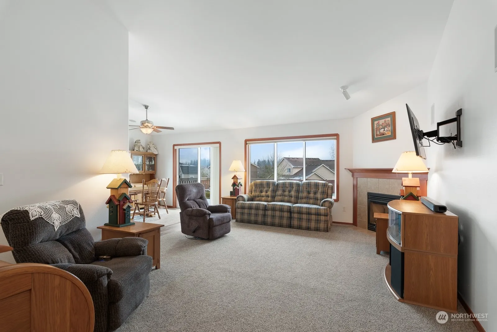 Well kept rambler in the highly desired Cedarhome neighborhoods with a huge yard! This 3 bed, 1.75 bath home has vaulted ceilings and a gas fireplace in the living room which opens to the dining area and kitchen complete with granite counters and lots of nice cabinet space. There’s a bedroom off living rm. with french doors that makes a great office/den if needed. Primary bedroom has a walk-in closet and 3/4 bath with double sinks. There’s air conditioning as well as a recently installed water softener & new garage door opener. Enjoy mountain views from the back deck and fenced yard with a spacious tool shed. The “good lots” are hard to come by and this is definitely one of them! Great schools and easy commute to I5!