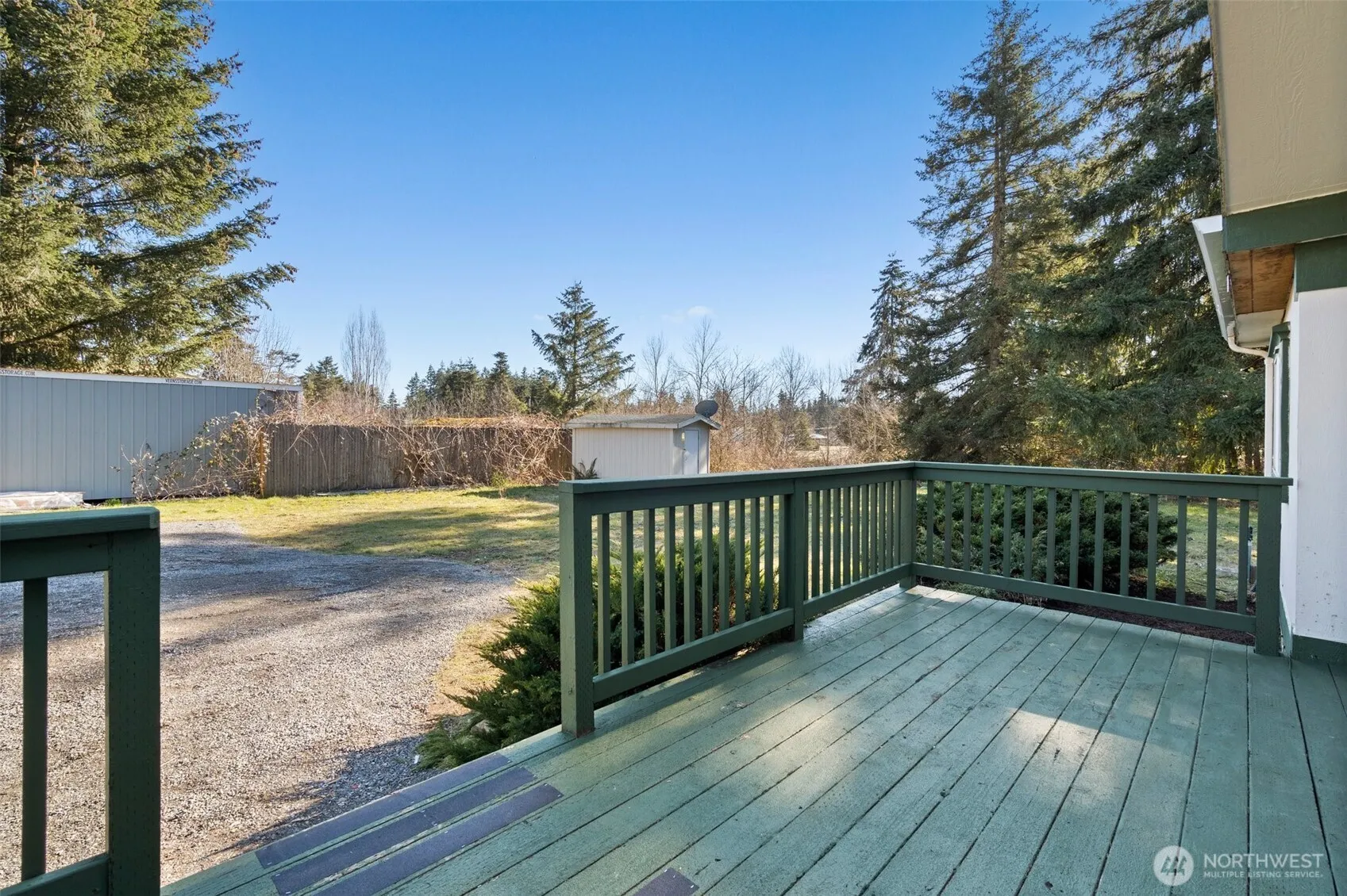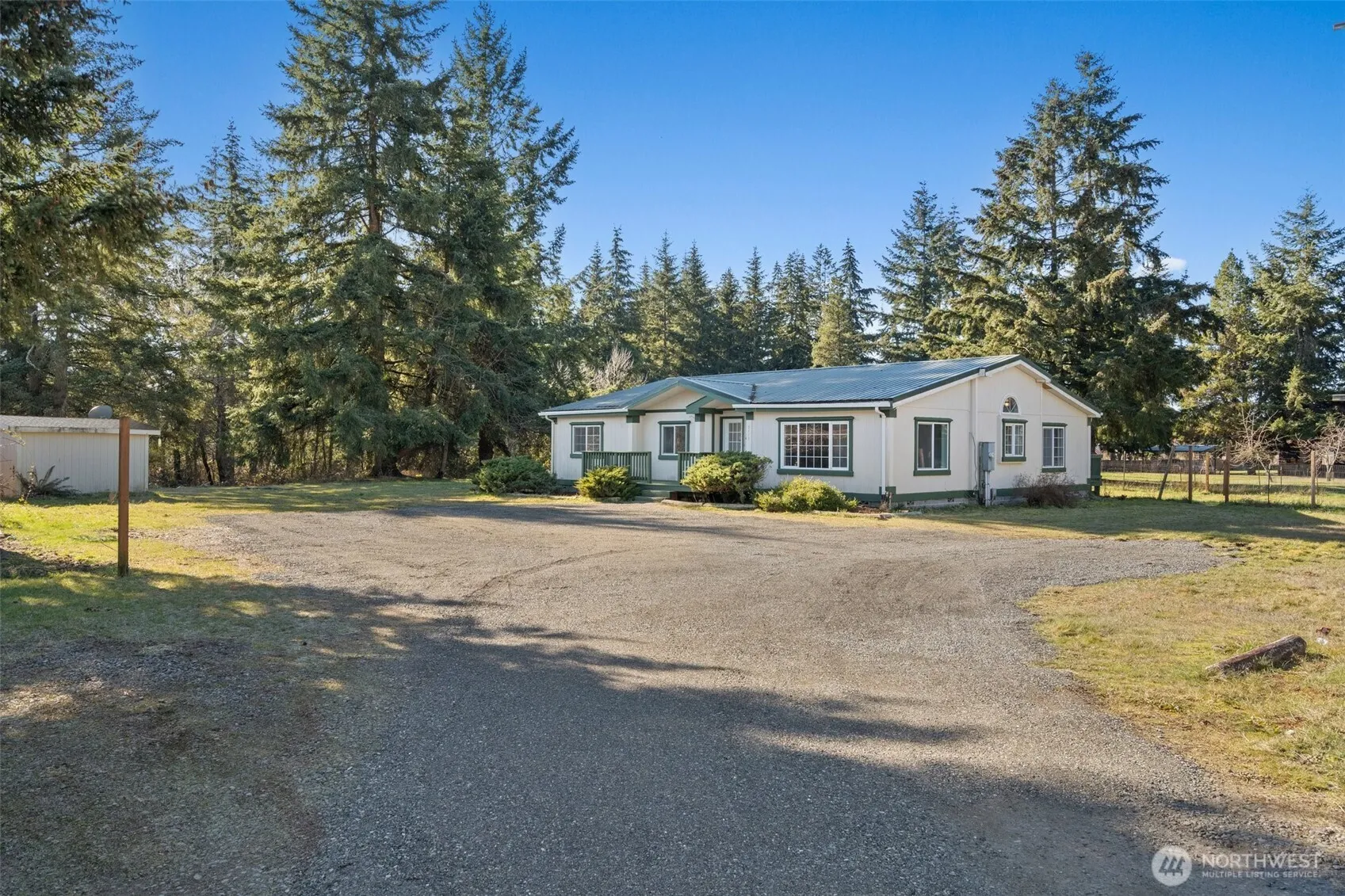Welcome to this beautifully updated triple-wide manufactured home in Rochester on over an acre! Offering 2,304 sq. ft. of spacious living, this 3-bedroom, 2-bath home boasts vaulted ceilings, a large kitchen, and generous living and family rooms—perfect for entertaining. The primary suite features a stunning new clawfoot tub for ultimate relaxation. Stylish vinyl flooring and plush carpet flow throughout. Enjoy the front and back decks. The partially fenced lot provides opportunity, while the wooded area at the back adds a serene touch. Conveniently located near I-5, shopping, and local amenities, this home combines comfort and accessibility. Don’t miss this gem!