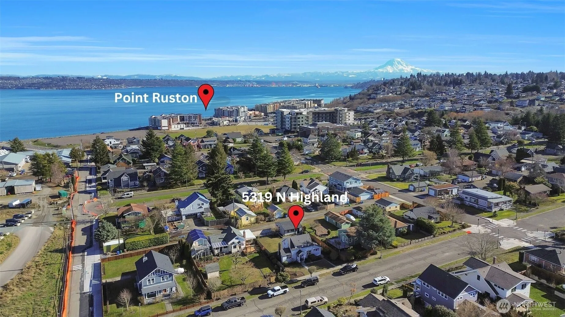 Amazing location in the heart of Ruston! Steps away from Point Defiance Park & Zoo, Vashon Ferry, & Point Ruston. This is a rare opportunity to own an updated Craftsman home with lots of charm. Partial view of Commencement Bay and The Puget Sound. This home features 3 bedrooms and 1 bath with a modern kitchen. White shaker cabinets, quartz countertops, subway tile backsplash and new appliances. Cozy Fireplace in main living area. Fully Fenced yard with mature landscaping and a large 2 car detached garage with ADU potential. Beautiful location with so many walkable options nearby.