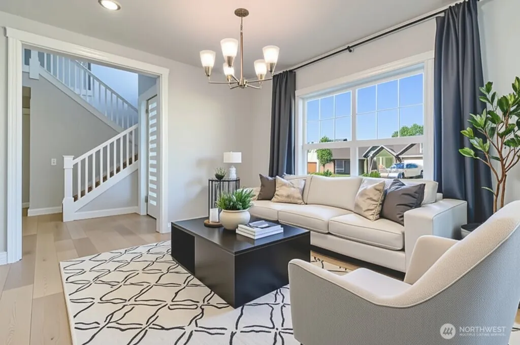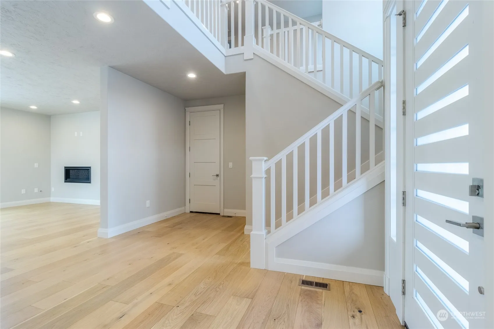 This stylish 4 bed/4 bath, designer home with 3 car garage is perfection! A thoughtful floorpan with multiple living spaces & easy to care for wide plank flooring throughout. Main level bedroom with built-in drawers can easily double as an office. Kitchen comes equipped with high-end Dacor stainless steel appliances, quartz counter tops, large island & walk-in pantry. Dining space has nice connectivity between kitchen & living room with access to the covered outdoor patio. Upper level of home holds 3 bed/3 bath, including the primary en-suite with spa-like bathroom & walk-in closet. Guest en-suite with 3/4 bath is located on opposite end of home as well as laundry. Home is equipped with tankless on demand hot water & water softening system.