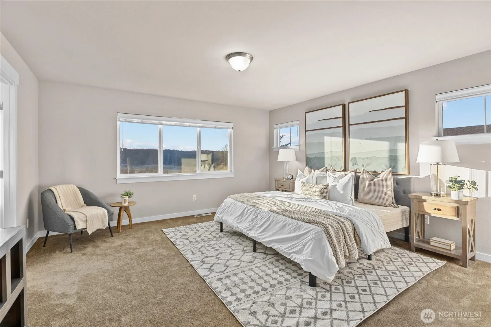 This competently maintained home seamlessly blends modern elegance with breathtaking valley vistas. Brand new flooring graces the spacious main living areas, flowing effortlessly from the living room with its expansive windows to the kitchen, adjacent dining area, and entertainment deck. Upstairs, new carpeting leads to a spacious laundry room and four bedrooms, including a master suite with the best views in the house. The lower level offers a sprawling rec room, a bonus room, and a substantial bedroom with an accompanying bath which is great for multi-generational living. Enjoy outdoor living on the entertainment-sized deck overlooking the valley and foothills.