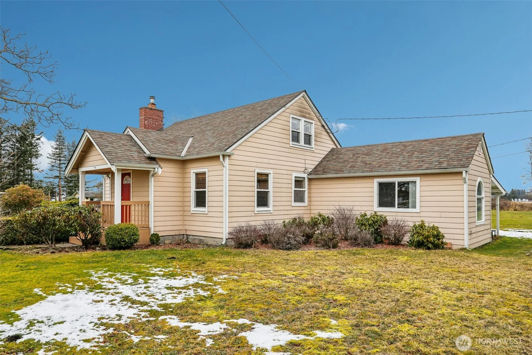 Rare opportunity! This fully fenced ¾-acre Enumclaw property features two homes with stunning Mount Rainier views! The main farmhouse (1,500 sq. ft.) offers 3 beds- 1 on main, 2 upstairs; 1 bath, a family room, large living room w/wood burning stove, dining room, kitchen with eating area, and mudroom/laundry room. The ADU (940 sq. ft.) has 2 beds, 1 bath, laundry room, living room and updated kitchen. Both homes have newer roofs (2017), siding (2013), and heat pumps! Both homes also have covered patios, great for outdoor living & entertaining. Expansive lot with RV/boat parking, 2 storage sheds, and mature walnut & hazelnut trees. No HOA! Minutes from downtown Enumclaw, dining, and recreation. Don’t miss this unique investment opportunity!