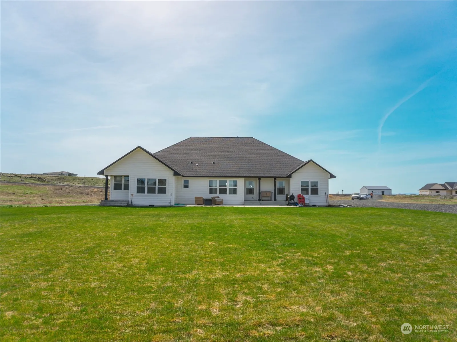 3056sq/ft custom built 4-bedroom 2.5 home on private 4.86acre lot in Ephrata WA. Exterior features include: 3 car garage, underground sprinkler system, 400amp power service, black garage door with glass windows, private entrance, two covered back patios, and more. Interior features include laminate flooring throughout living/kitchen/hallway, tile flooring in laundry/bathrooms, craftsman trim with white cabinetry with accent island in kitchen. Quartz countertops in kitchen/bathrooms. Matte black plumbing and door hardware throughout home. Bonus room above garage (4th bedroom). Large pantry off kitchen with built in shelfing. Stainless steel kitchen appliances included. Primary bedroom with large closet/soaking tub/tile shower, and more!