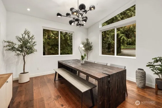 Architectural Modern. 6 bedroom, 3.5 baths, 3 car garage totaling 4400 sqft on a 19,432 sqft lot on a natural park setting. Oversized Chef’s kitchen, SS appliances, butler’s pantry, floating cabinets and shelves, 22ft soaring ceilings. Primary bedroom retreat on main flr with heated bath flrs, walk in shower, freestanding tub and walk in closet. Downstairs features family room, wine bar and flat level backyard opening to McAleer Creek. On-demand water heater, central vacuum, generator, A/C. Heated covered balcony with fireplace perfect for outdoor entertaining. Brookside Elementary and Lake Forest Park Town center is within a 5-minute walk. Great access to Downtown Seattle and Burke Gilman trail.