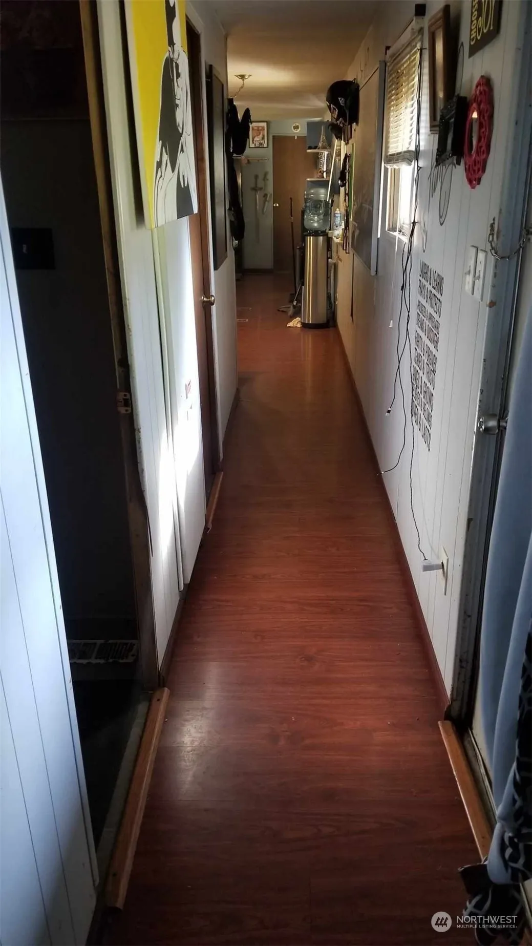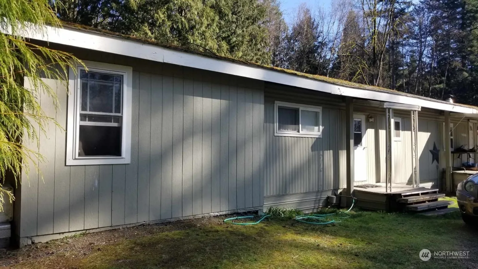 3 bedroom, 1 1/2 bath older single wide manufactured home, need sprucing up but livable. Nestled in the trees and situated in a quite and private dead end lane. Spacious and private backyard with plenty of sunshine. Property is partially fenced and backs up to a partial creek. Garage has been enclosed creating a huge storage area. Outdoor shed is powered. Home has a built on roof-over. Property being sold as-is.