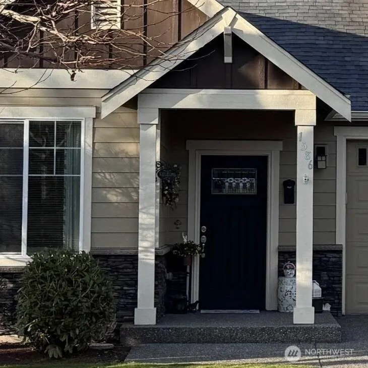 Assumable VA mortgage of $229K at 2.25% for qualifying Veterans! Located in Bryce Park, a sought-after 55+ community in Lynden, this beautiful single-family home offers main-floor living with 9’ ceilings, a vaulted living room with a gas fireplace, a flex room, dining area, ½ guest bath, laundry room, and no-step entry from the two-car garage. The kitchen has granite counters, a tile backsplash, stainless appliances, lighted pantry, peninsula eating bar, and new m/w and KitchenAid high-end dishwasher. The master suite features a walk-in closet and dual-sink bath. Upstairs: 2 bedrooms and full bath. Enjoy central A/C, covered patio, and landscaped yard with sprinklers. Residents love the clubhouse, activities, and adjacent walking trails.