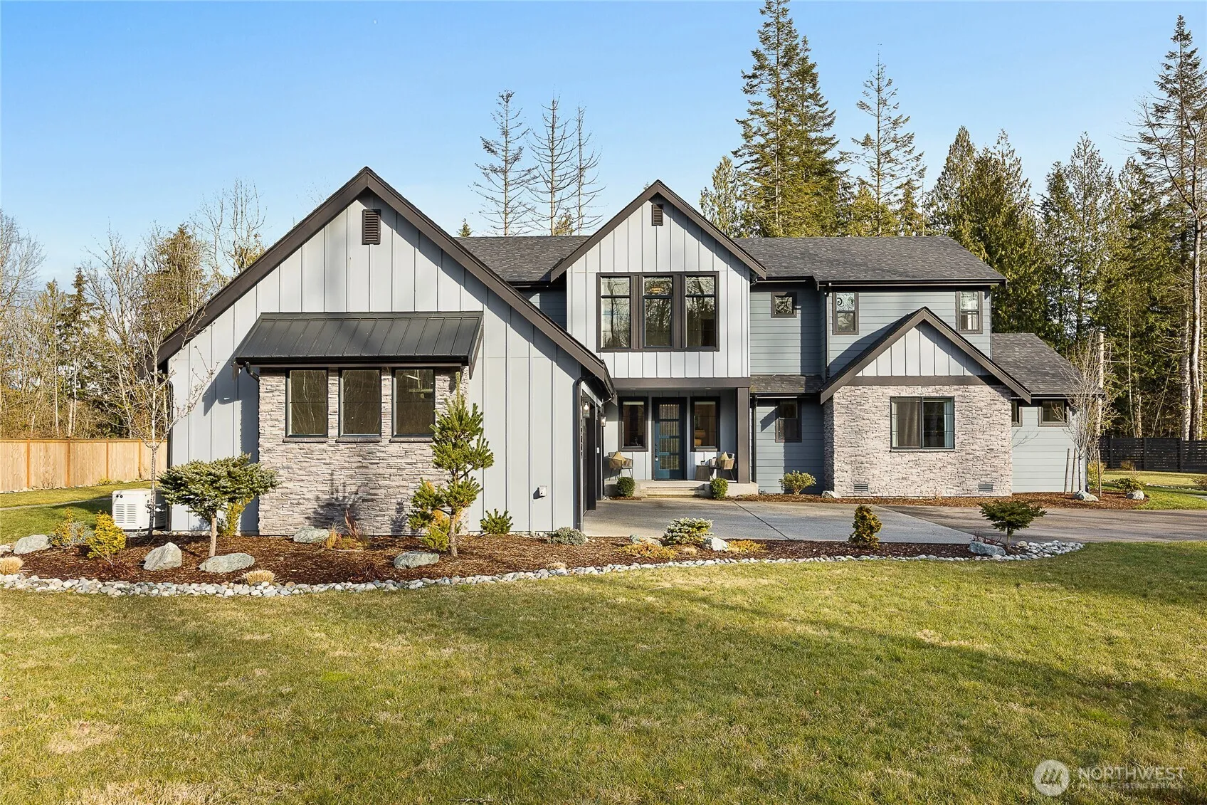 Welcome to Wild Sky Estates where elegance meets everyday life!! Gorgeous Home with the elusive Main Floor Primary Suite with spa inspired private bath, 9′ ceilings, Chef’s dream kitchen with high end appl, lg island, rich cabinetry, slab Quartz counters, designer finishes, huge WIP, Den/office, Laundry & Powder rm. Skybridge overlooks the Great Room with natural lighting, Stylish Fireplace which gives the room a cozy feeling. Covered outdoor living area with folding doors & glass panels & Stone gas FP for year round enjoyment. Upstairs- 2nd Primary suite, 2 more beds & generous bonus room. Included full-house Zone-controlled SunShades, Full house 26kw Generac generator, Professional landscaping with Gazebo with cedarwood patio!!