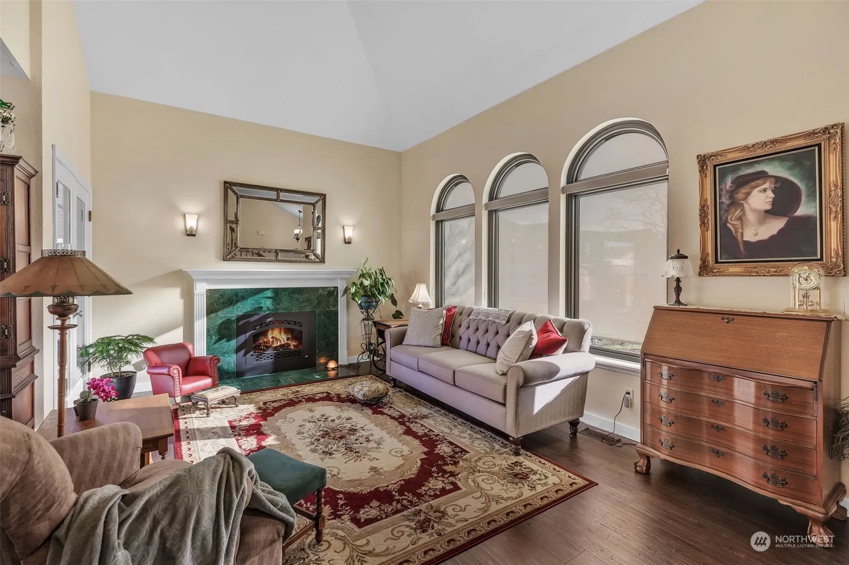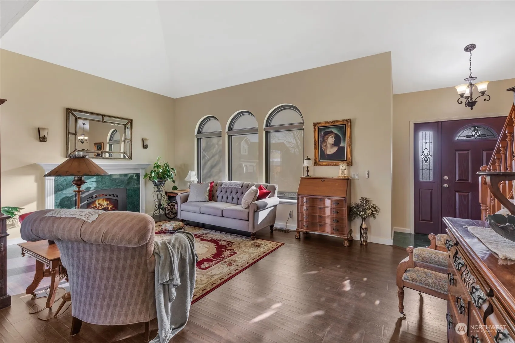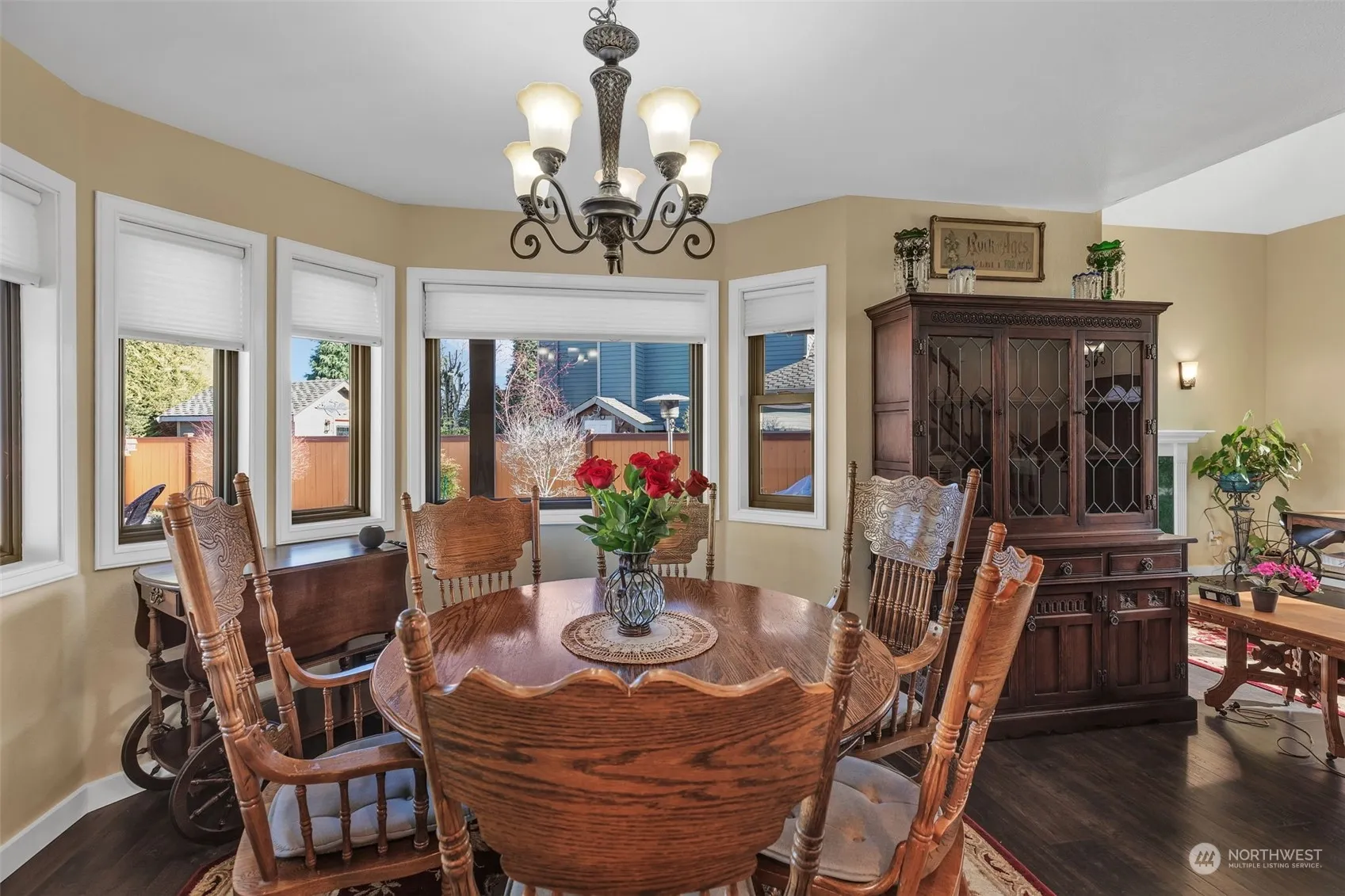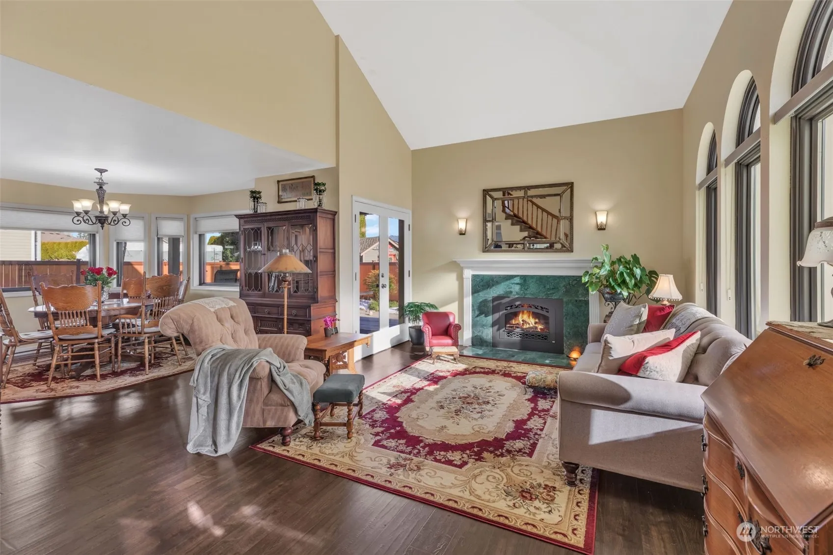 Welcome to this beautifully updated and maintained home, featuring a gourmet Thomasville kitchen (just 2 years old!) with soft-close cabinetry, pull-out drawers, and a pull-out pantry—a dream for any chef! Enjoy new stainless steel appliances, including a gas stove, convection microwave, and a large-capacity fridge. Natural light pours through new Anderson windows (3 yrs), complete with UV protection and easy lift-out cleaning. Cozy up by the rebuilt gas fireplace, and rest easy knowing the home is equipped with a heat pump and wiring for a portable generator. Step out on the covered wrap around deck perfect for relaxing or entertaining. The automatic wind covering adds comfort year-round. Walking distance to schools and downtown Enumclaw.