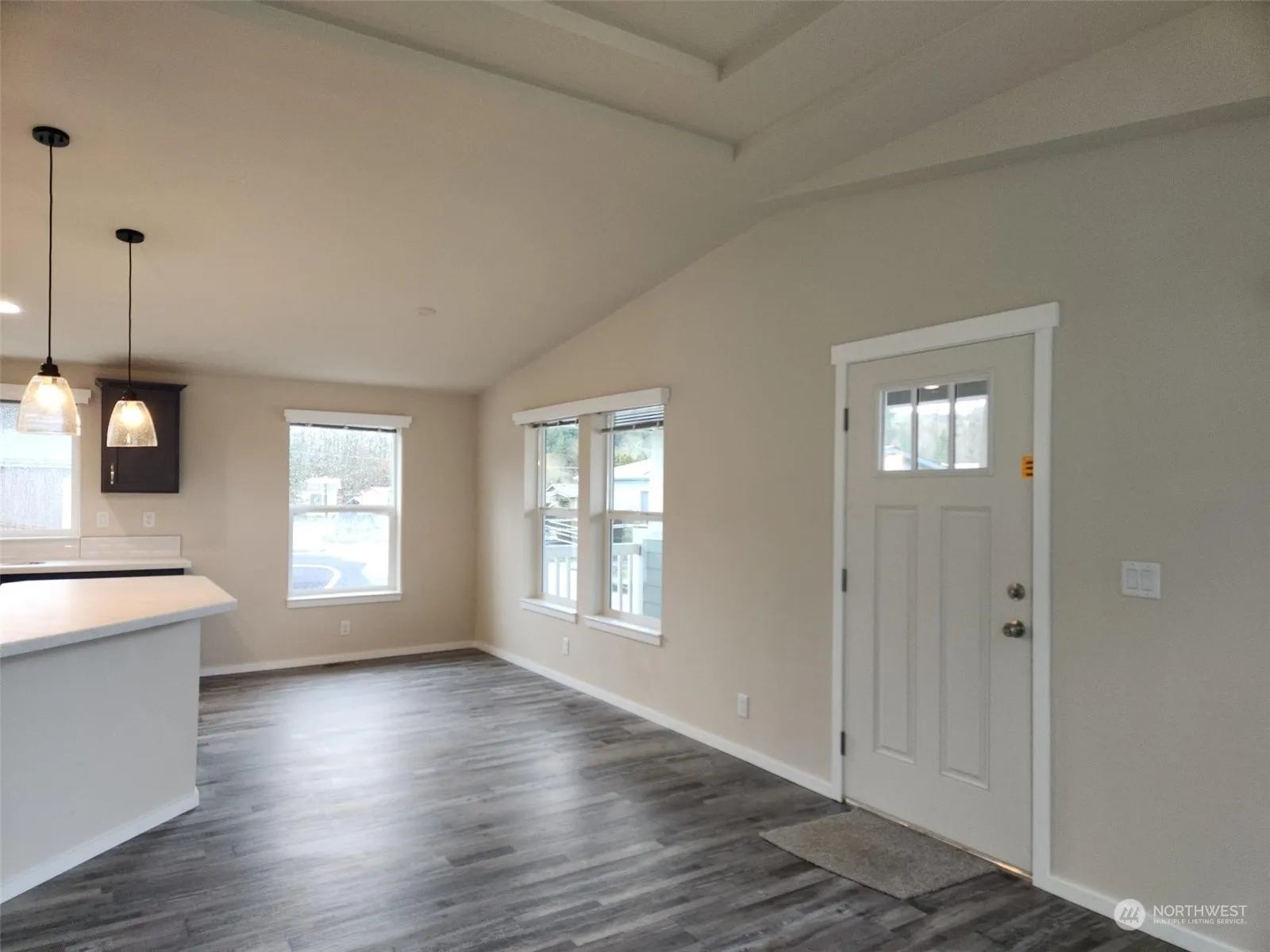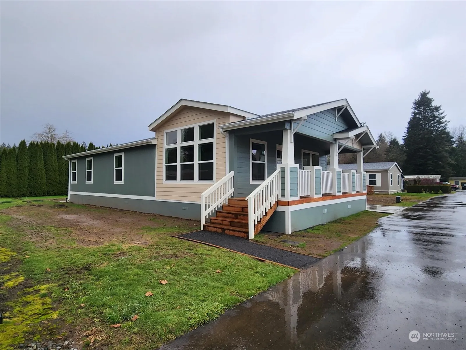 Luck of the Irish came early with this BRAND-NEW Palm Harbor 2+ bedroom/2 bath home in the desirable Edgewater Estates 55+ park. Unit 44 is located across from a large field looking towards the Cowlitz River and is 2nd to last home on the dead-end street. Relax on the expansive covered front deck, watch the birds, and enjoy life. Inside offers high ceilings w/coved ceiling in living room. Open room concept with LR flowing into dining, kitchen with eating bar and back to laundry with door to concrete parking pad and NEW storage shed. Corian counters throughout home, good cabinet space along with solid shelving in pantry. Primary offers (2) walk-in closets a bath w/low-step tile shower w/bench. Rent includes water/sewer. Put-on must-see list!