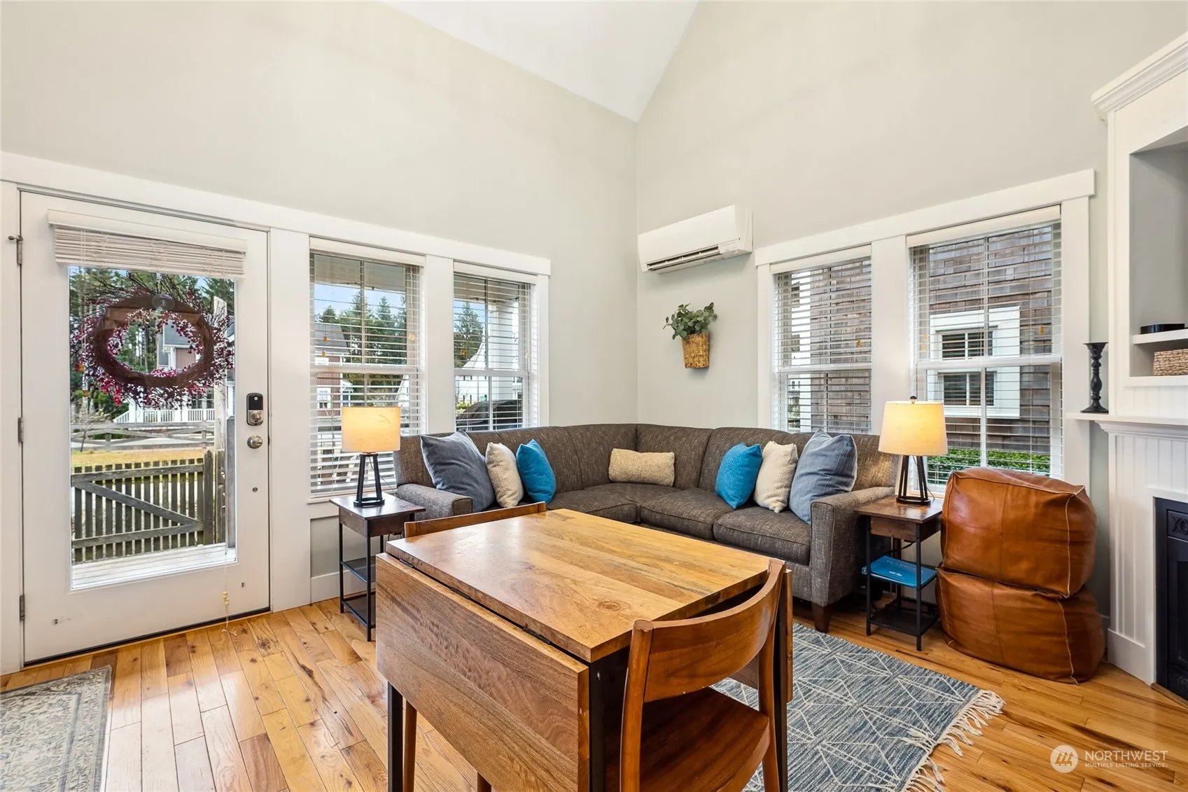 Breathe in tranquil mornings from the covered porch of Abode by the Barn, situated among the orchard cottages in the Farm District. Be welcomed by a living area with vaulted ceilings, a cozy fireplace, kitchen, and dining area. Through the living area is the primary bedroom and bathroom. The loft offers additional room with two twin beds and a balcony that overlooks the nearby horse pastures and community garden. A short walk to the Town Center, this home highlights simple living and close proximity to amenities.