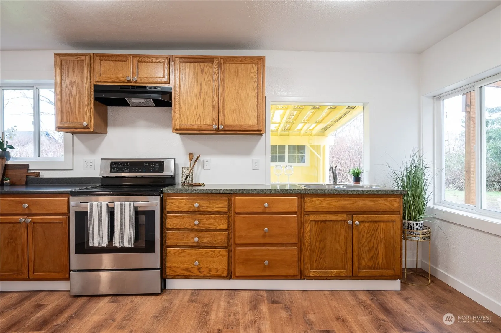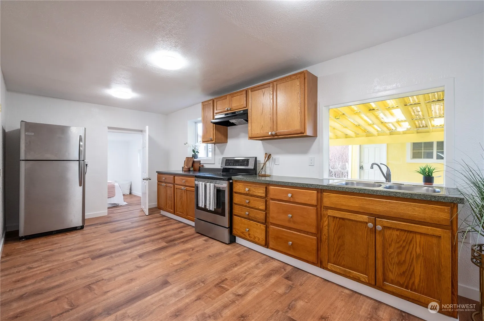 Adorable, recently updated home ready for you to move in! Enjoy peace of mind with a new roof, updated wiring, new flooring, and freshly painted inside and out. This cheery 2-bedroom home sits on a spacious 8,625 sq ft lot—perfect for your fur babies. The wired, heated outbuilding is set up for laundry with extra space for an office/storage. A handy carport doubles as a breezeway to the laundry room. Relax on the small but quaint front porch, perfect for morning coffee or evening unwinding. Out of the hazardous flood zone and just 30 minutes from beautiful beaches. Experience PNW living!