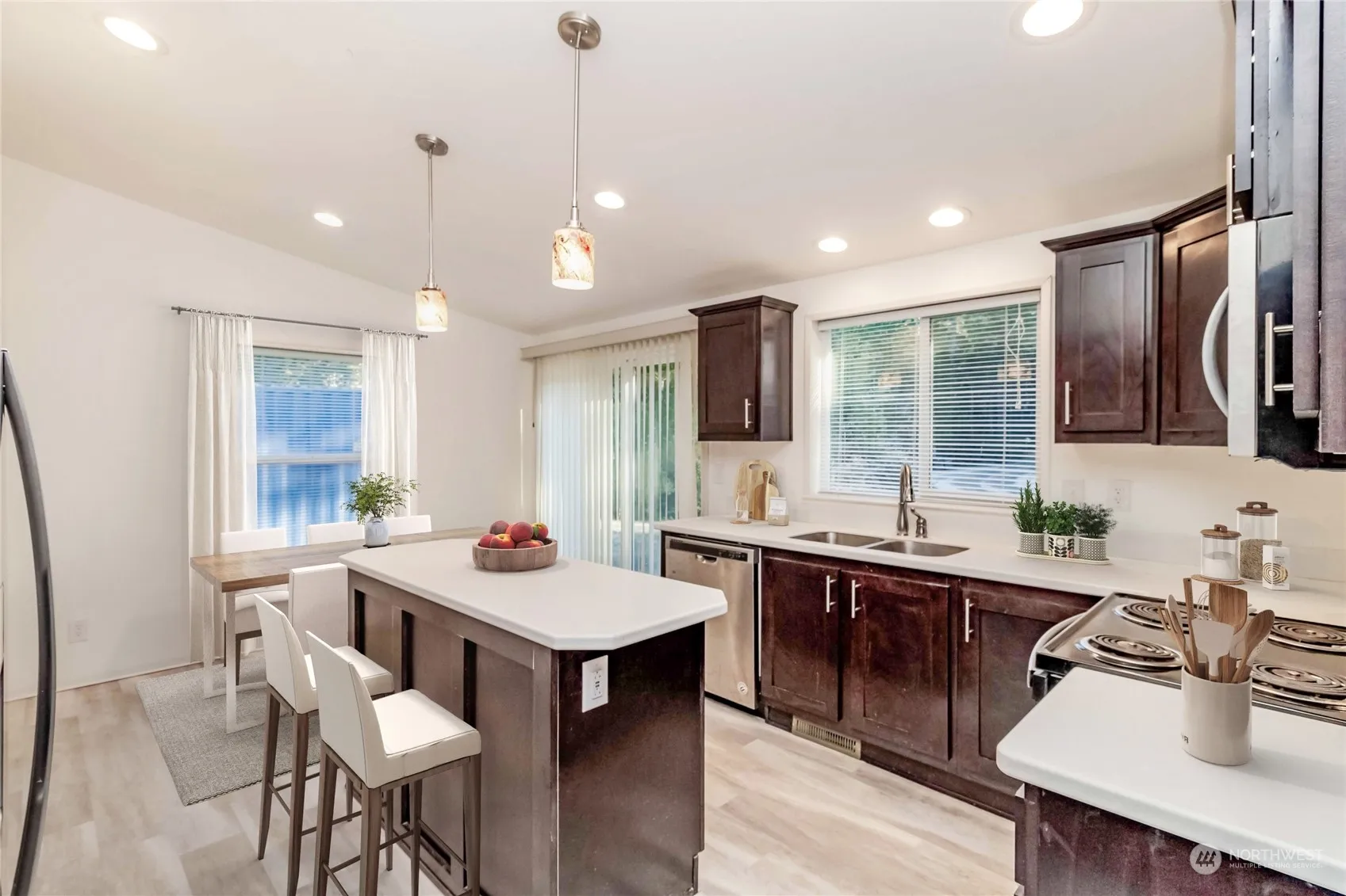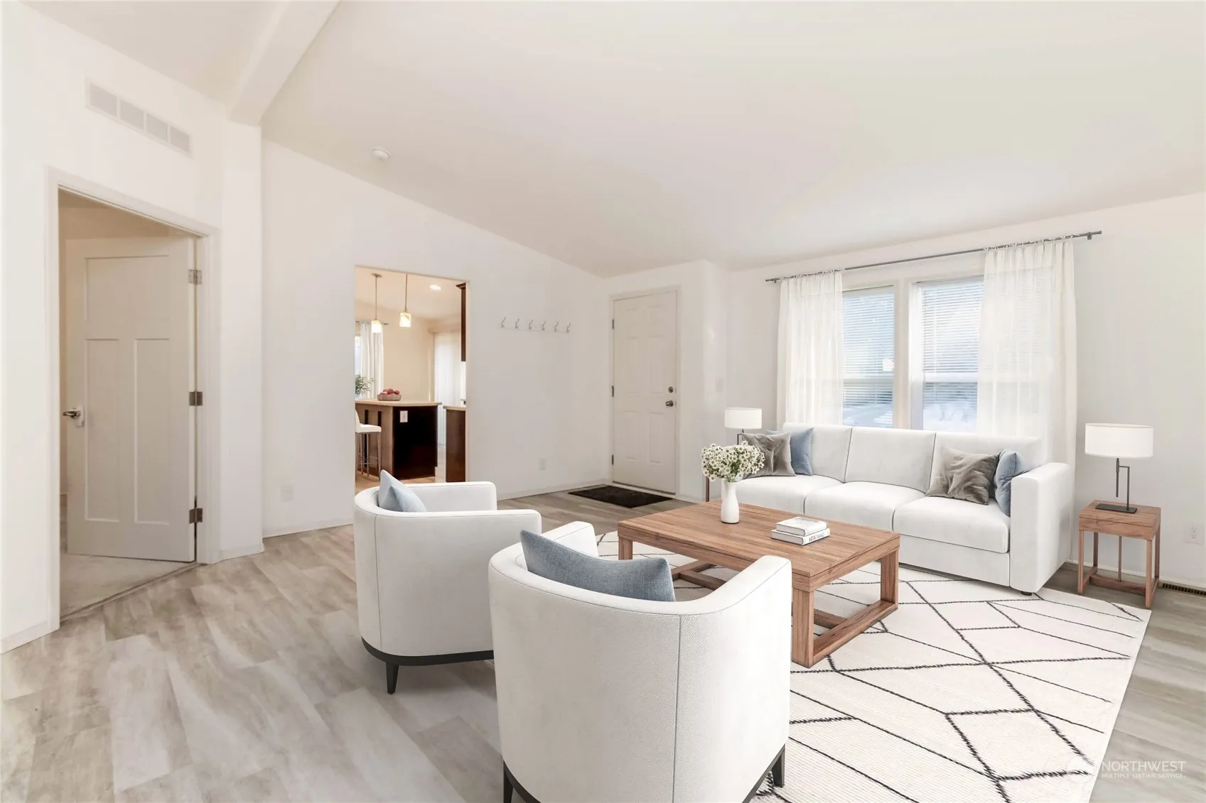 Picture yourself living just above beautiful Hood Canal in a quiet neighborhood surrounded by homes on acreage. This bright, open-concept home features vaulted ceilings throughout, SS appliances, Corian counters, and lovely dark wood cabinets. The spacious primary suite includes a walk-in closet and bath off the primary. Enjoy the beautiful deck, perfect for entertaining or relaxing. Plenty of room for pets, play, or adding your dream shop/garage. Equipped with RV parking and hookups, a new 40ft conex container for extra storage, and a cell enhancer that stays. Community beach access included—your private retreat awaits!
