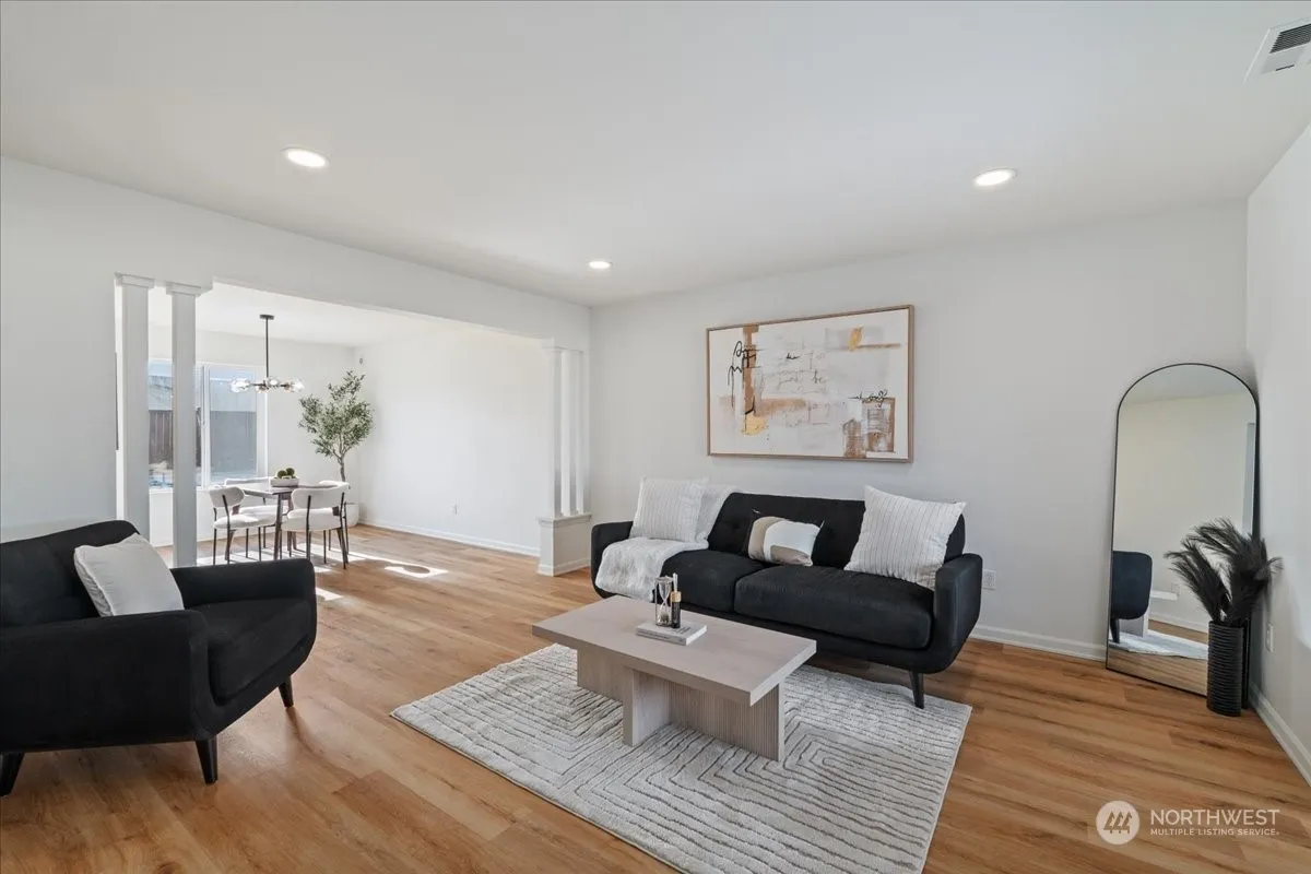 Former model home w/ 3 bedrooms (could be 4 bedrooms if large bonus room was used as a bedroom). Skylights, vaulted ceilings, air conditioning, living room on entry, large dining room. Newly updated modern gourmet kitchen w/granite countertops, abundance of cabinets & storage, huge island w/seating, pantry. Primary suite w/large walk-in closet, ensuite & bonus space. Spacious laundry room w/sink. Large bonus room ideal for bedroom/office/craft room/playroom. Office off family room w/french doors. Alexa enabled lighting, appliances & more. Central vac, whole house audio. Extensive landscaping, gazebo, conduit for outdoor kitchen, sprinkler system. Mountain views. 2 car garage, RV parking. See Full Upgrade List. Walkable to elementary.