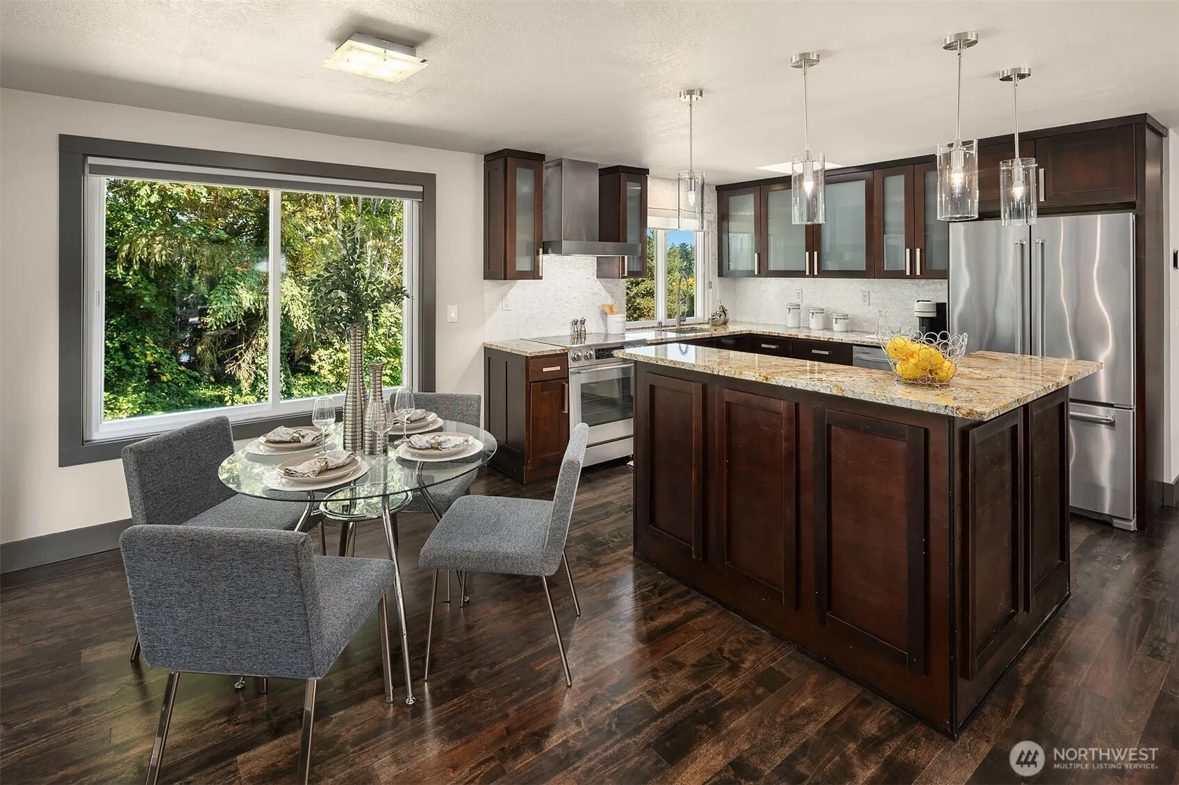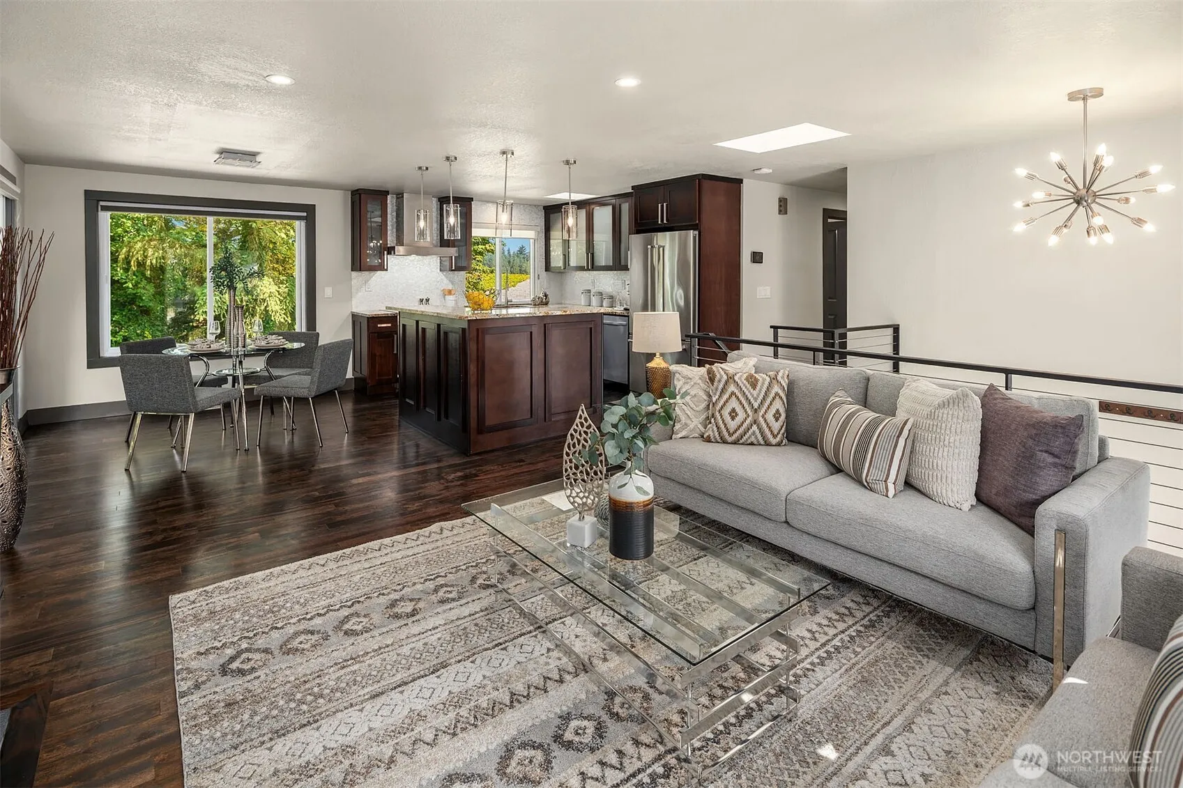 Excellent opportunity in highly coveted Hunts Point! Completely remodeled in 2015/16 & a recent refresh with gorgeous refinished hardwoods, new interior paint, new carpet & spruced-up landscaping make this modern home move-in ready. Open concept main floor with a sleek electric fireplace framed by floor-to-ceiling tile, dining area with a slider to the balcony, lighted art niche, & slab granite kitchen with island. 2 skylights & a picture window flood the space with natural light. Primary suite with tile bath & 2 BRs close by. Garden level family room with French doors to the patio & a 4th BR with a slider to the backyard. Generous lot with paver patio & level backyard. Exceptional schools & convenient to downtown Bellevue & freeway access.